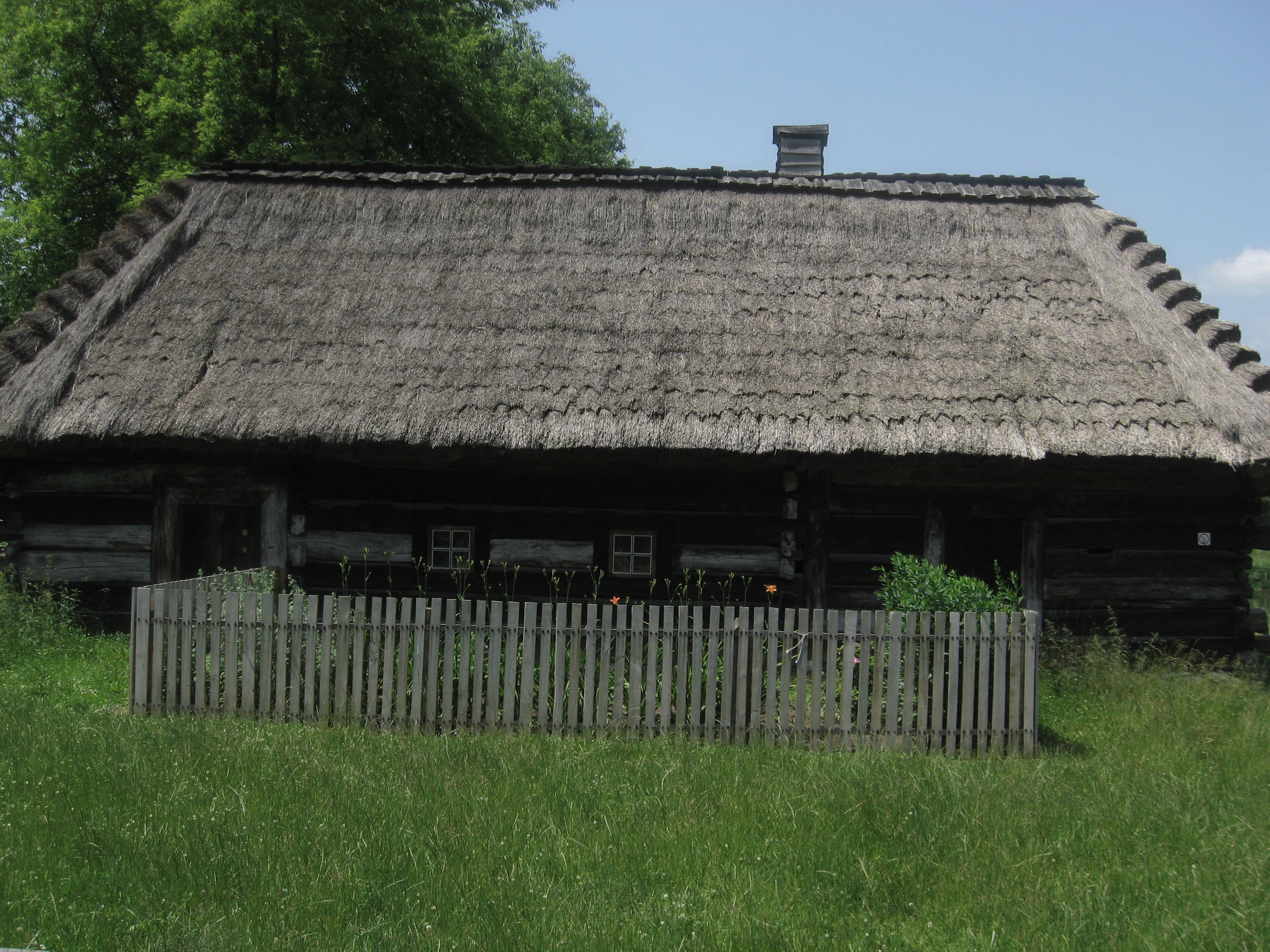 Chałupa ze wsi Brzeziny z 1789 r. Chałupa asymetryczna o konstrukcji zrębowej (węgłowej). Dach czterospadowy kryty strzechą.
