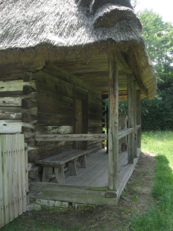 Chałupa zamożnego gospodarza ze wsi Głodno z lat 1880-1890. Chałupa wąskofrontowa o konstrukcji zrębowej (węgłowej), z podcieniem szczytowym. Na zdjęciu widoczny ganek.