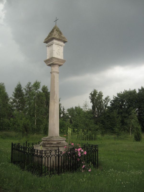 Rekonstrukcja kapliczki z 1660 roku ze wsi Szczebrzeszyn. Kapliczka słupowa z latarnią (górna częsć kapliczki). Na latarni ukryte pod czteropołaciowym daszkiem widnieją płaskie reliefy prezentujące sceny pasyjne i napis REPERO/1850/FRANCISZKA/IGNACY wykuty zapewne dla upamiętnienia fundatorów naprawy.