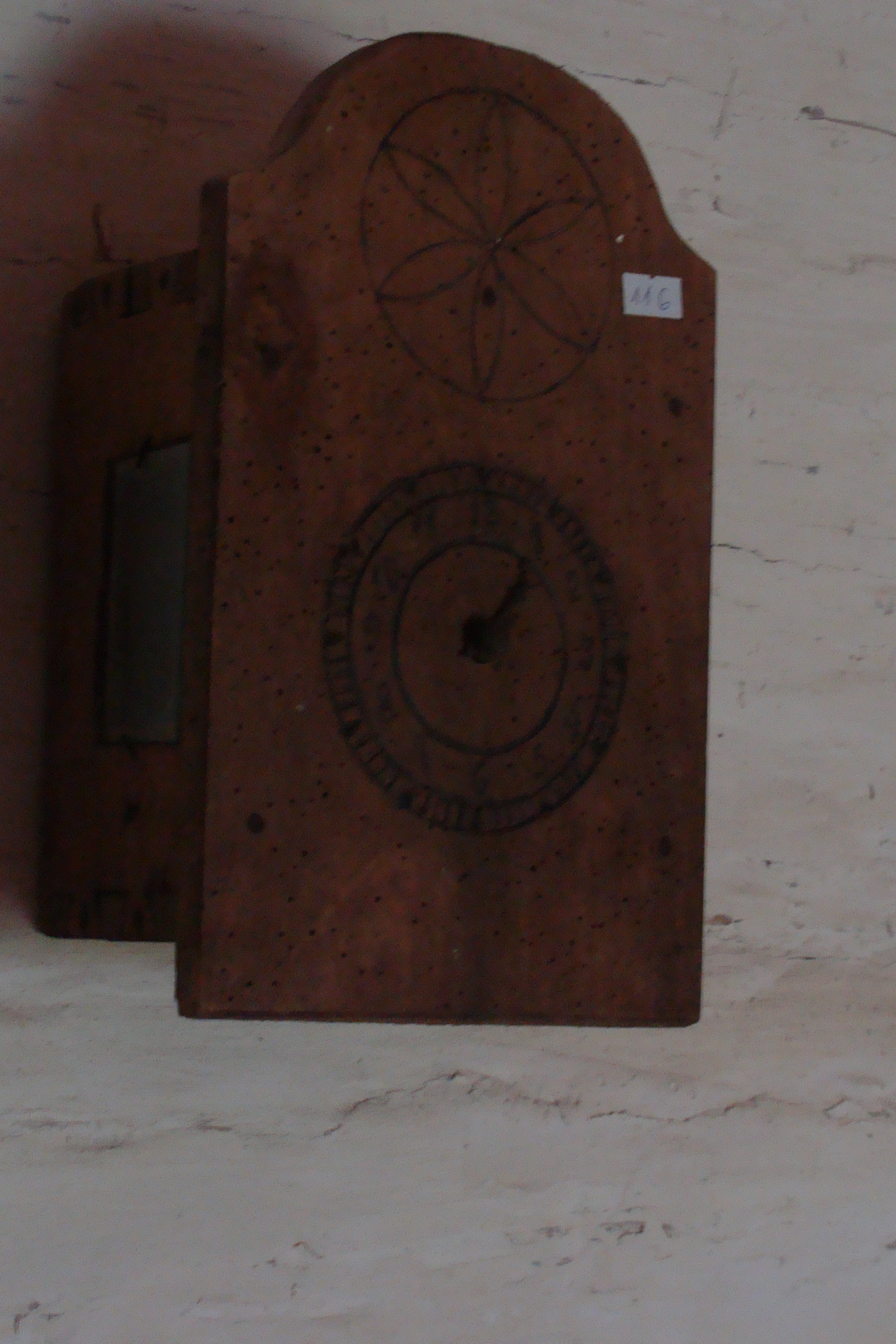 Drewniany zegar w dużej izbie chałupy litewskiej.