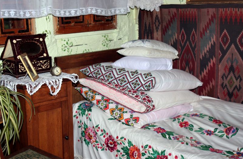 Wyposażenie chałupy ze wsi Stary Las zaaranżowane na dom przesiedleńców z Kresów Południowo-Wschodnich, którzy po 1945 roku przybyli na Ziemie Odzyskane. Wzory tkanin świadczą, że po wojnie w tej chałupie nie gospodarzyli już rdzenni mieszkancy Śląska Opolskiego, tylko przybysze z polskich Kresów Wschodnich. |