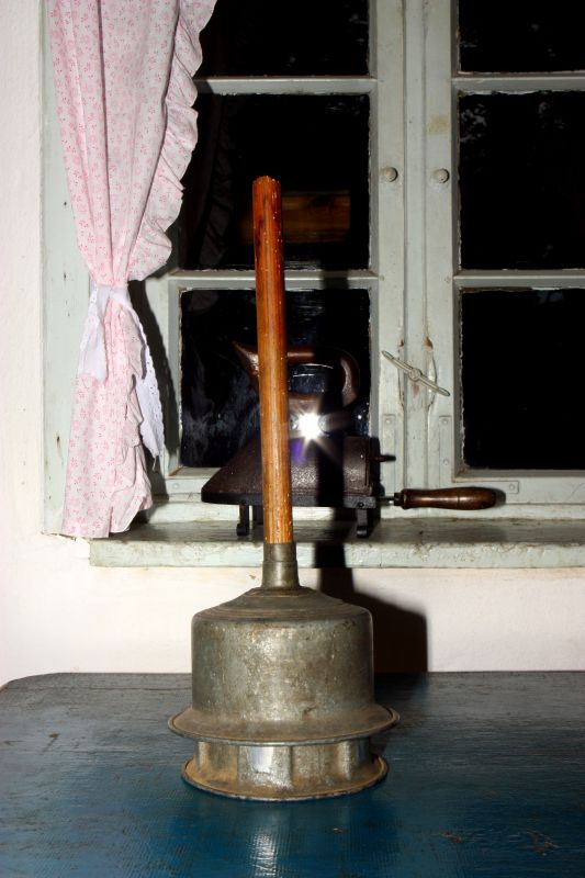 Dzwon do prania – jeden z obiektów znajdujących się w wyposażeniu pokoju nauczyciela w chałupie ze wsi Sternalice.