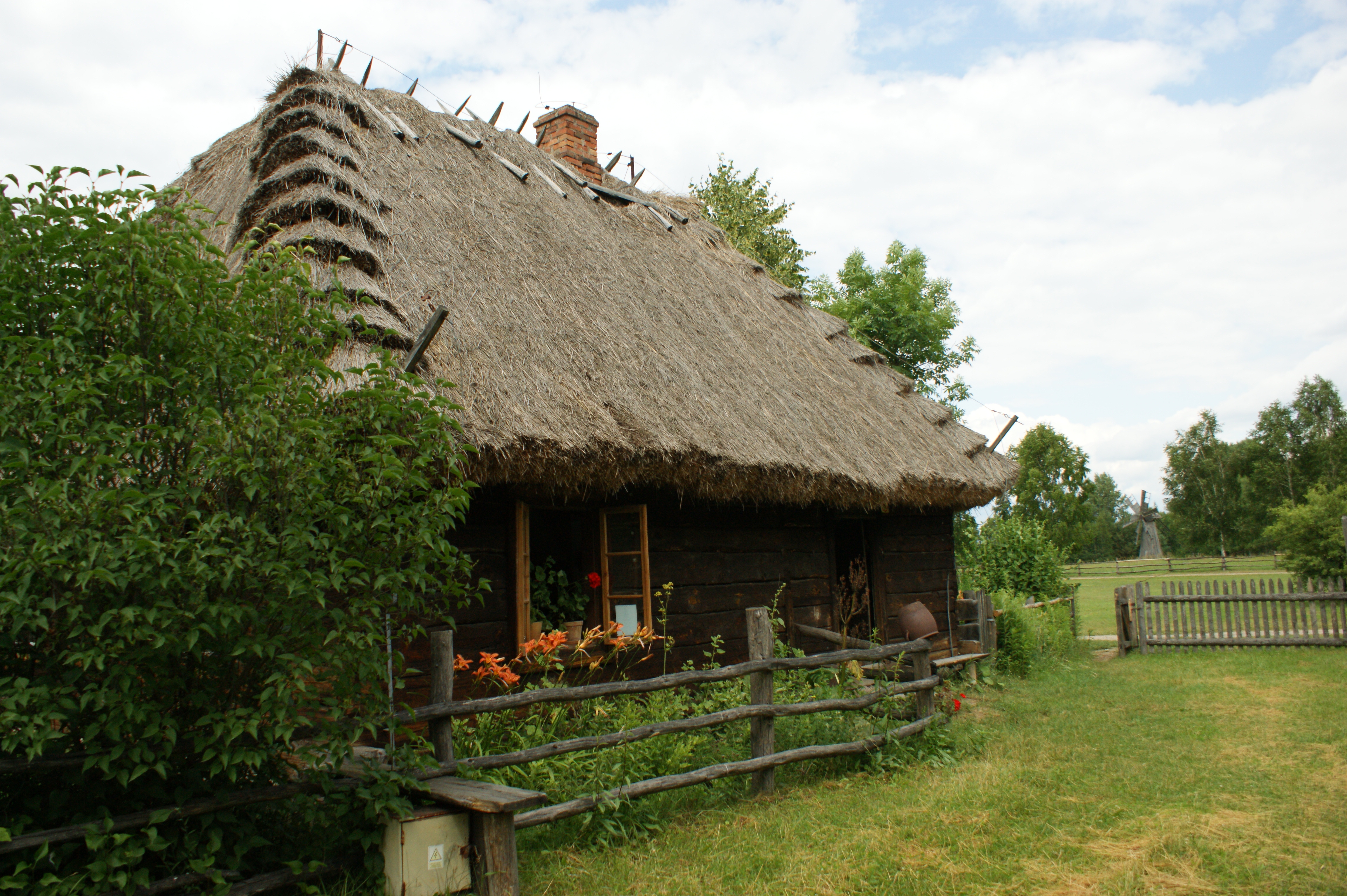 Chałupa ze wsi Tymianki Bucie z przełomu XIX i XX wieku. Budynek o konstrukcji zrębowej. Dach czterospadowy kryty słomianą strzechą ze schodkowaniem na narożach.
