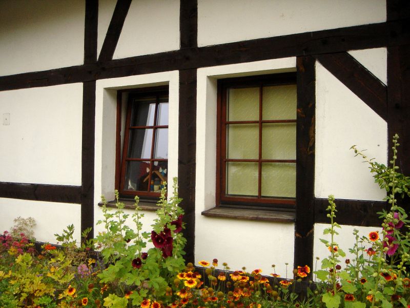 Biuro muzeum - zrekonstruowana chałupa jamneńska. Konstrukcja budynku jest tradycyjna, szkieletowa.