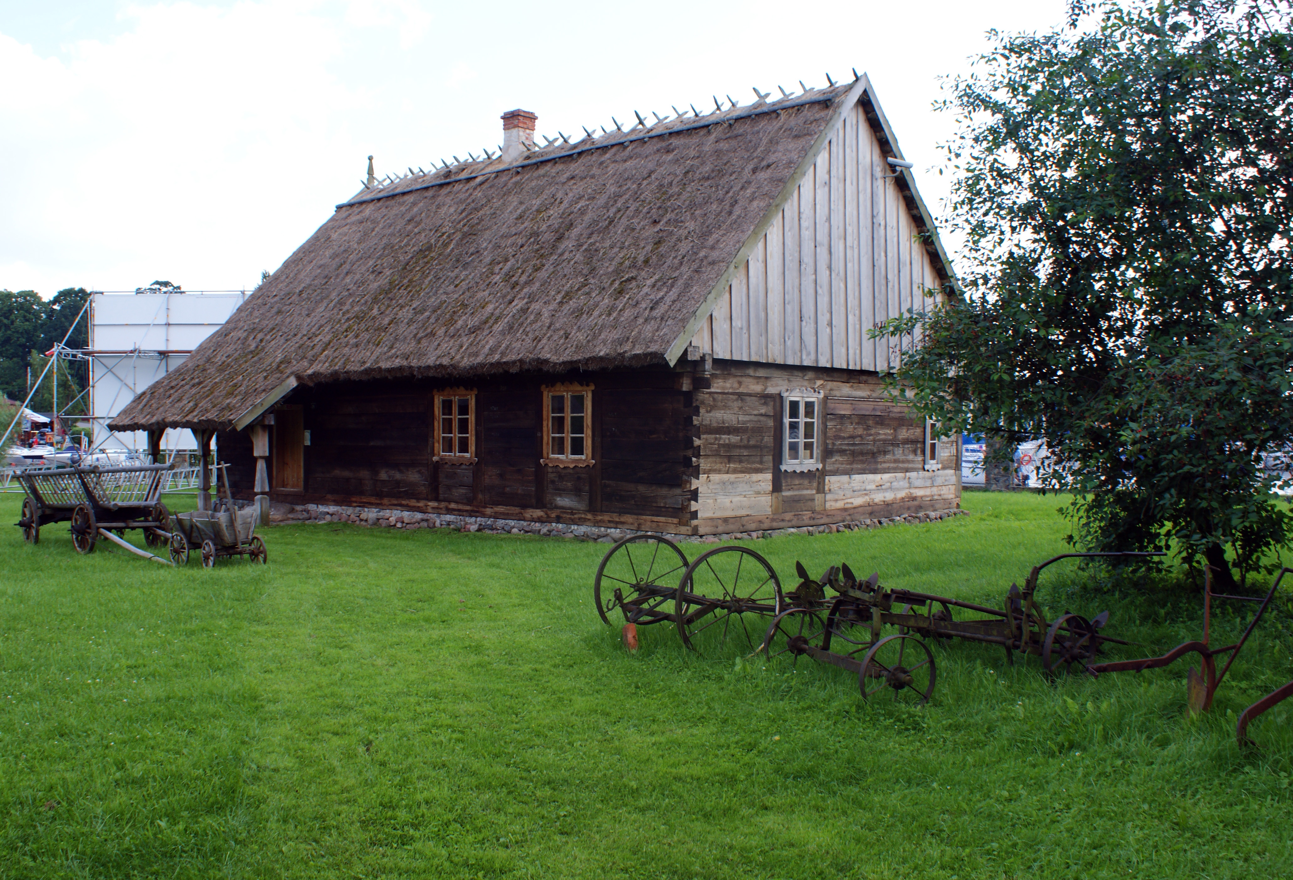 Chałupa z podcieniem wypustkowym ze wsi Krzyżewo z XIX wieku. Chałupa o konstrukcji zrębowej z węgłami łączonymi na "rybi ogon" bez ostatków. Przy oknach zrąb łączony z konstrukcją sumikowo-łątkową. Fundament z kamienia. Dach dwuspadowy kryty płasko słomą. Kalenica wzmocniona kozłowaniem.