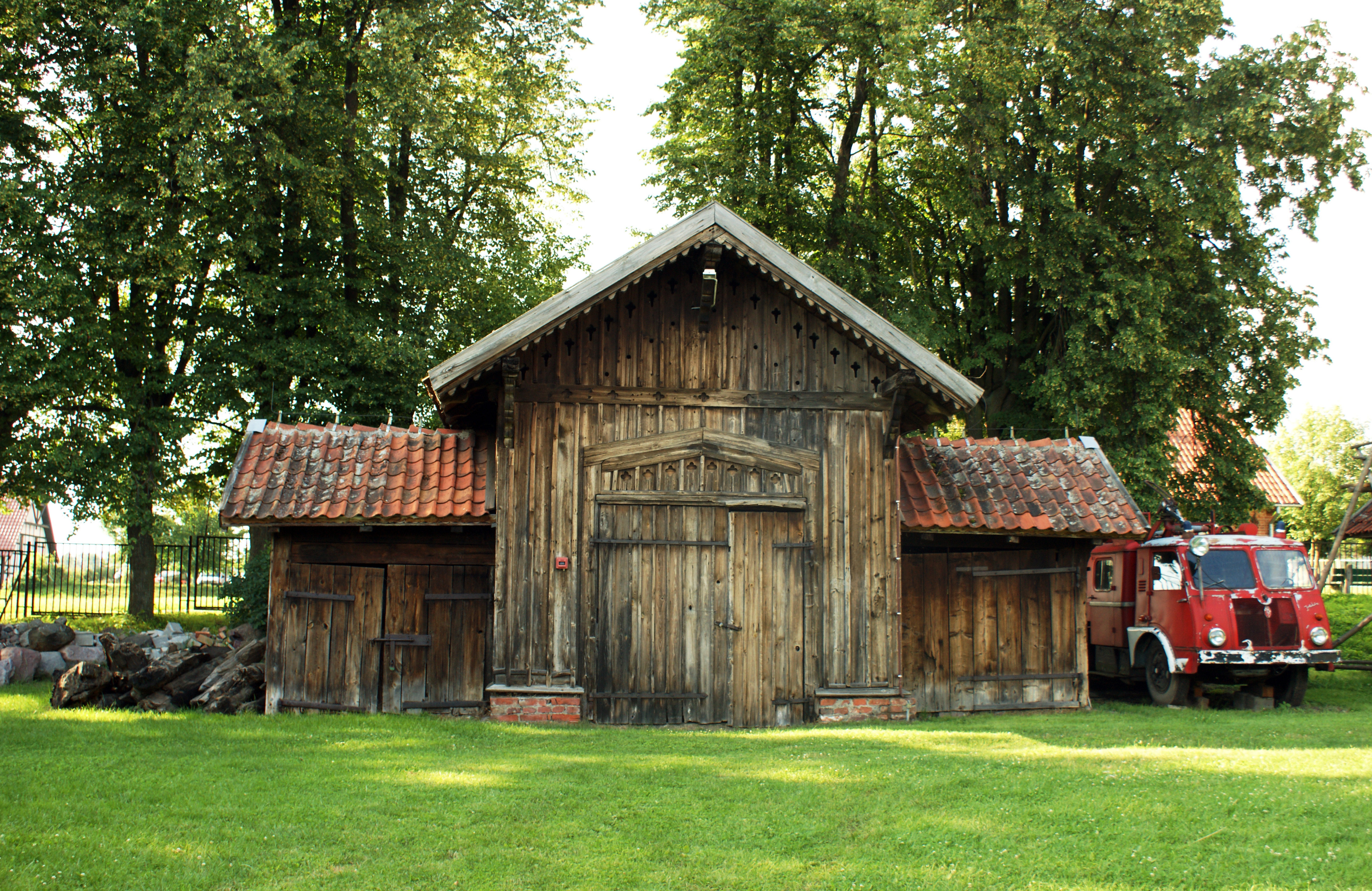 Remiza strażacka ze wsi Ołownik z przełomu XIX/XX wieku. Budynek o konstrukcji szkieletowej. Dach kryty dachówką.