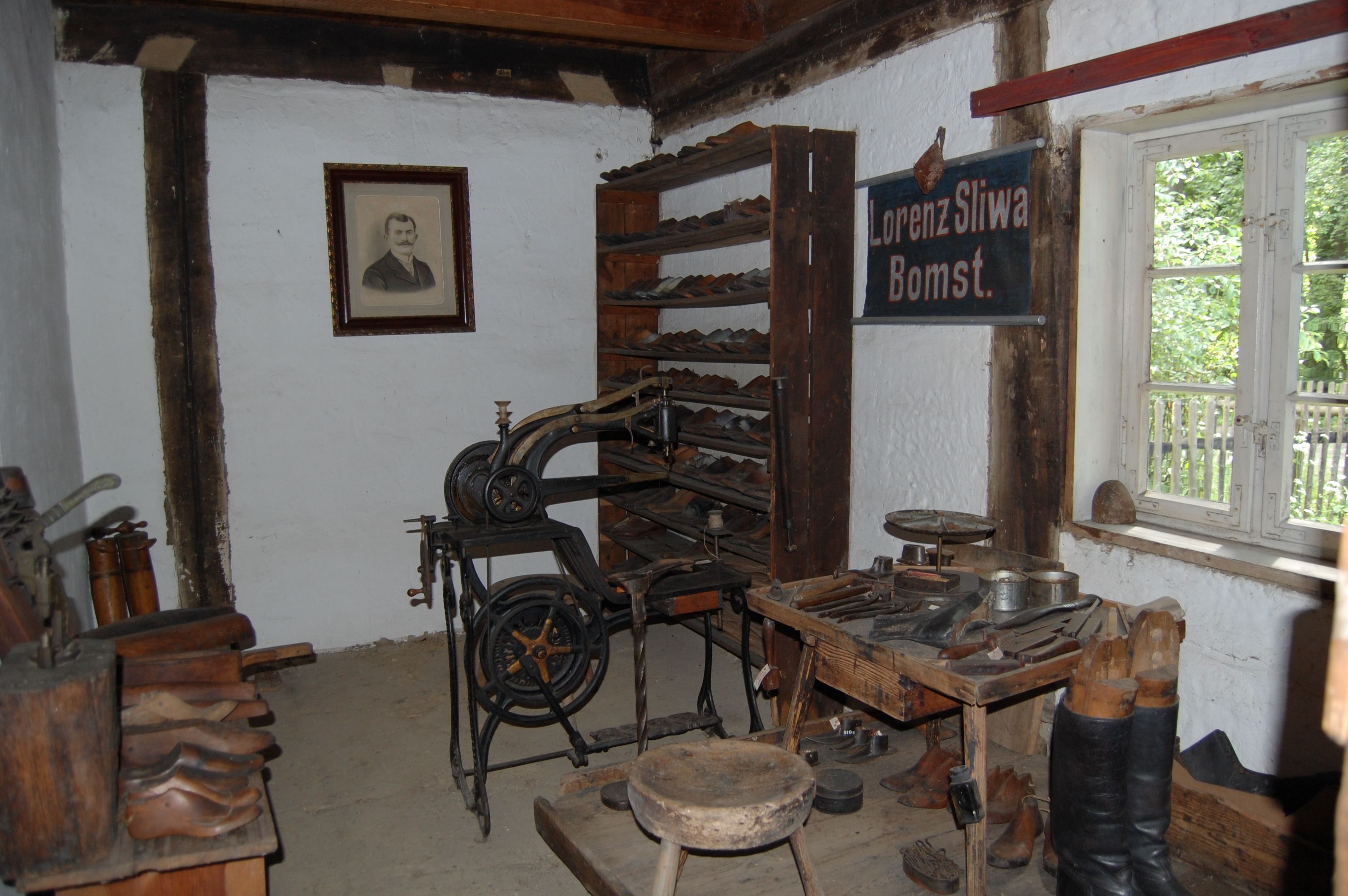 Izba przeznaczona na warsztat szewski w chałupie ze wsi Potrzebowo. Podłoga z gliny.