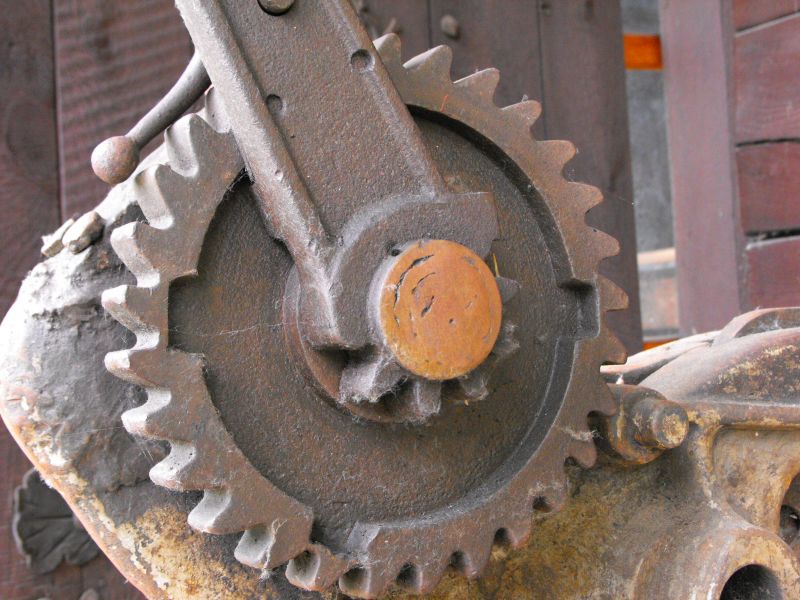Nożyce do cięcia metalu: na zdjęciu widoczna zębatka, dzięki której możliwe jest powolne zwieranie ostrzy i wytworzenie ogromnej siły nacisku.