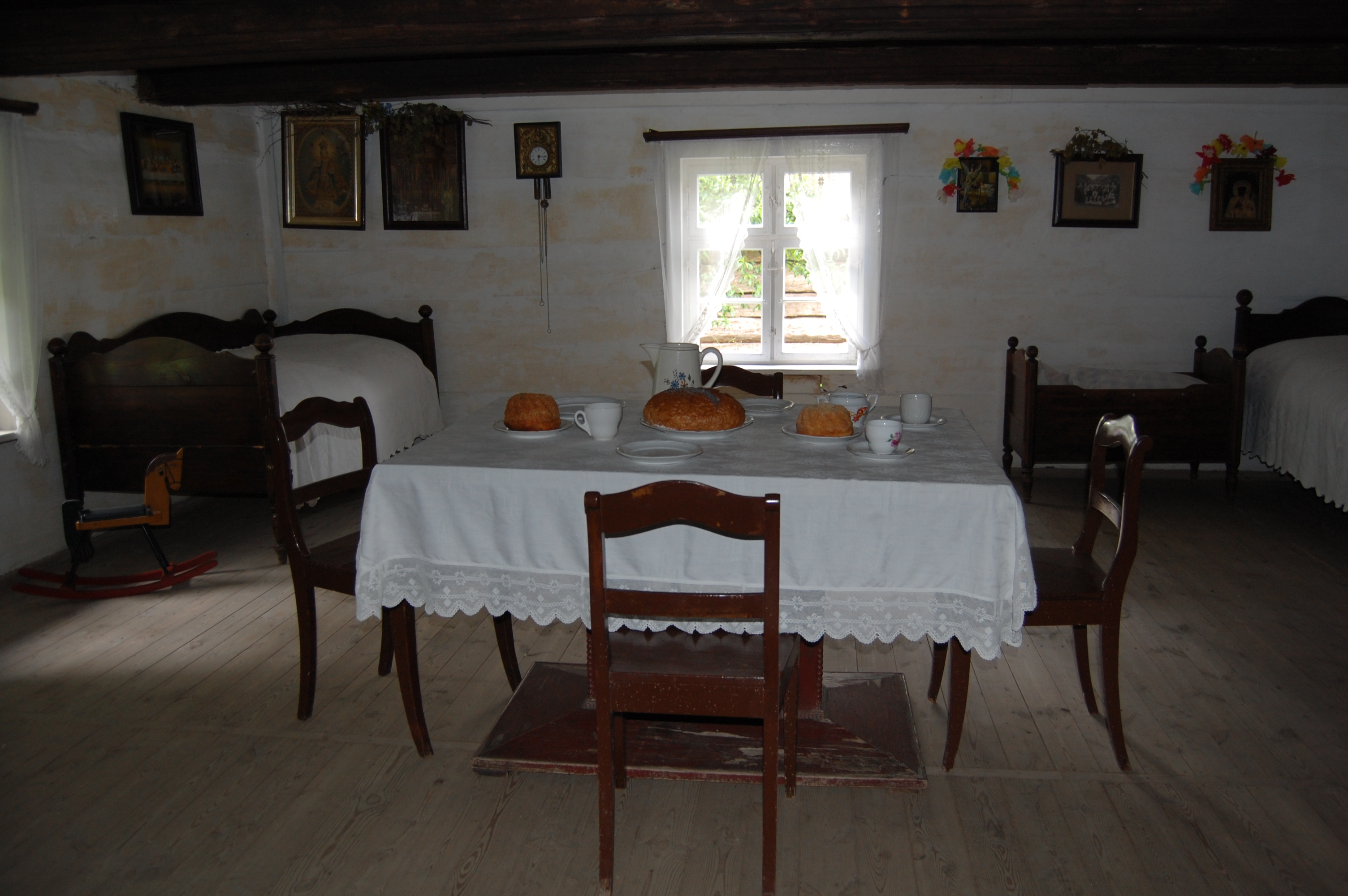 Izba biała w chałupie bogatego gospodarza ze wsi Krobielewo pochodzącej z 1803 roku. We wnętrzu zaprezentowano wyposażenie okresu międzywojennego ludności autochtonicznej. Meble wykonane przez miejscowych rzemieślników, wyposażenie pochodzi z lat 30tych XX wieku.