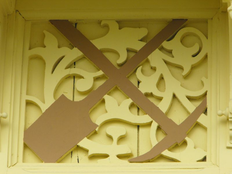 Drewniane zdobienia ścian stacyjki Wolbórka (później Czarnocin).