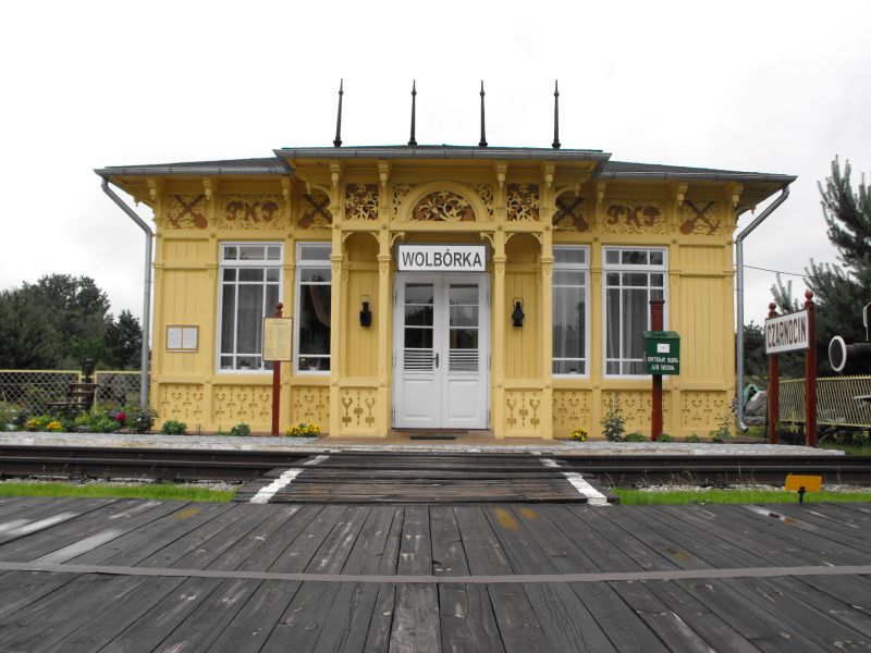 Stacyjka Wolbórka (później Czarnocin). Budynek drewniany o konstrukcji słupowo-ryglowej wypełnionej deskami. Przed wejściem ganek wsparty na czterech kolumnach. Liczne, ażurowe elementy dekoracyjne ścian i obudowy ganku. Stacyjka prezentuje tzw. styl uzdrowiskowy, który rozpowszechnił się w całej Europie po wystawach paryskich z lat 80. XIX w. Cechuje go lekkość konstrukcji i bogata, drewniana ornamentyka. Z ustaleń znawców dawnej architektury wynika, że takie właśnie, identyczne stacyjki, budowane systemem modułowym w warszawskich warsztatach kolejowych, ustawiono wzdłuż dawnej Kolei Warszawsko - Wiedeńskiej. Obecnie znajduje się w niej biuro Skansenu. |