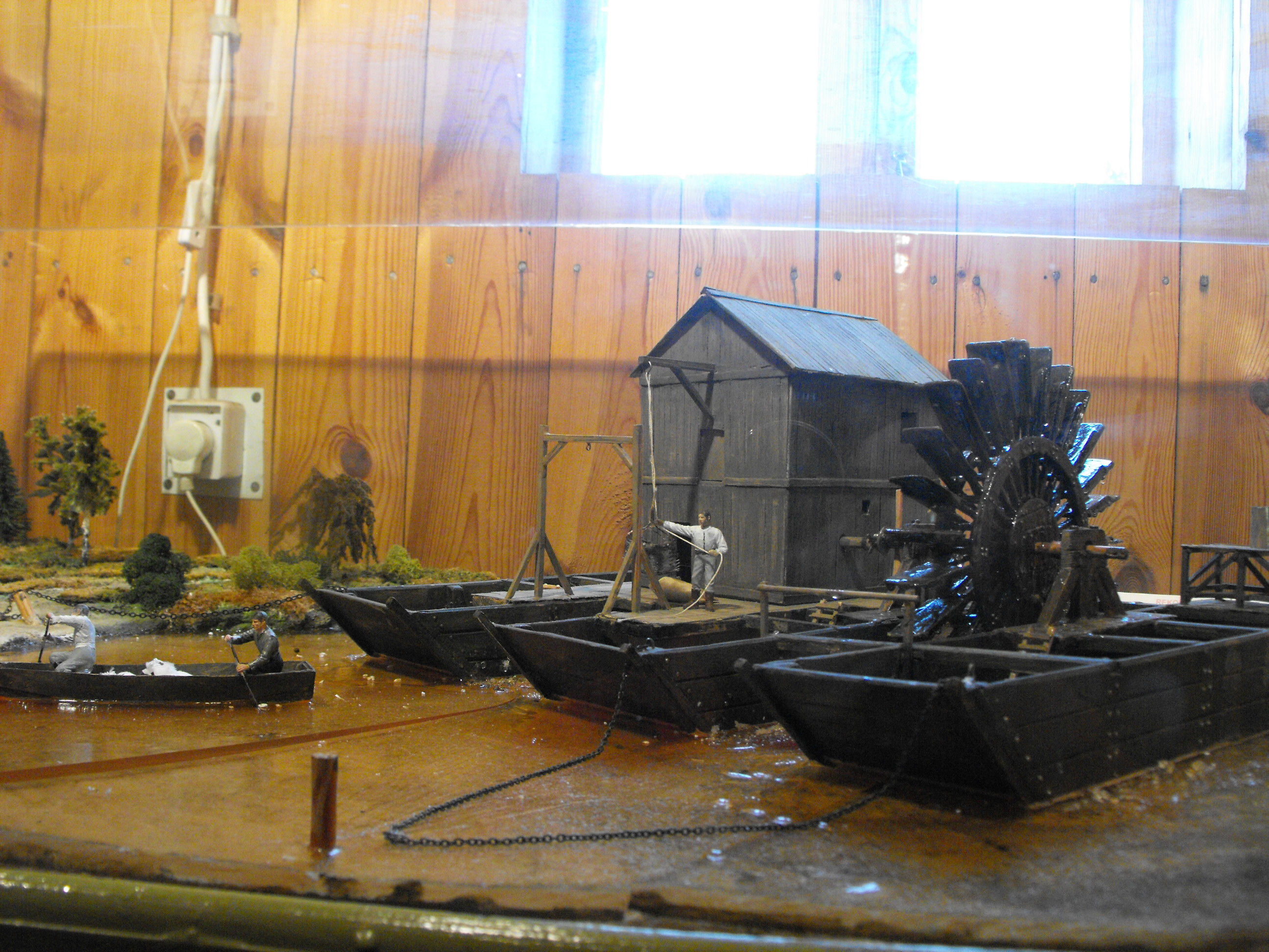 Ekspozycja "Młynarstwo wodne w dorzeczu Pilicy". Makieta młyna pływającego.
