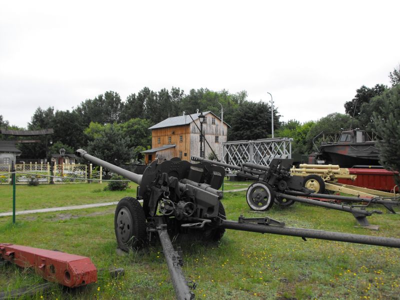 Trzy radzieckie armaty dywizyjne, w tym ZiS-3 wz. 1942 kal. 76,2 mm oraz D-44 kal. 85 mm. Szczególnie interesująca jest radziecka armata USW 39(r) kal. 76.2 mm o charakterystycznej piaskowej barwie, którą zdobyli i po pewnych przeróbkach użytkowali Niemcy. W czasie walk nad Pilicą została przez nich porzucona, a następnie rozłożona na części przez ludność z okolicznych wsi. |