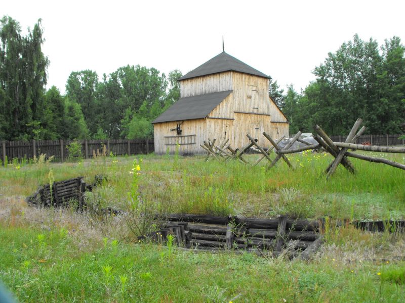 Brog z Ośrodka Hodowli Żubrów we wsi Książ z 1934 roku. Budynek o konstrukcji szkieletowej oszalowanej deskami. Na pierwszym planie okop odtworzony na podstawie instrukcji polowej Wehrmachtu.