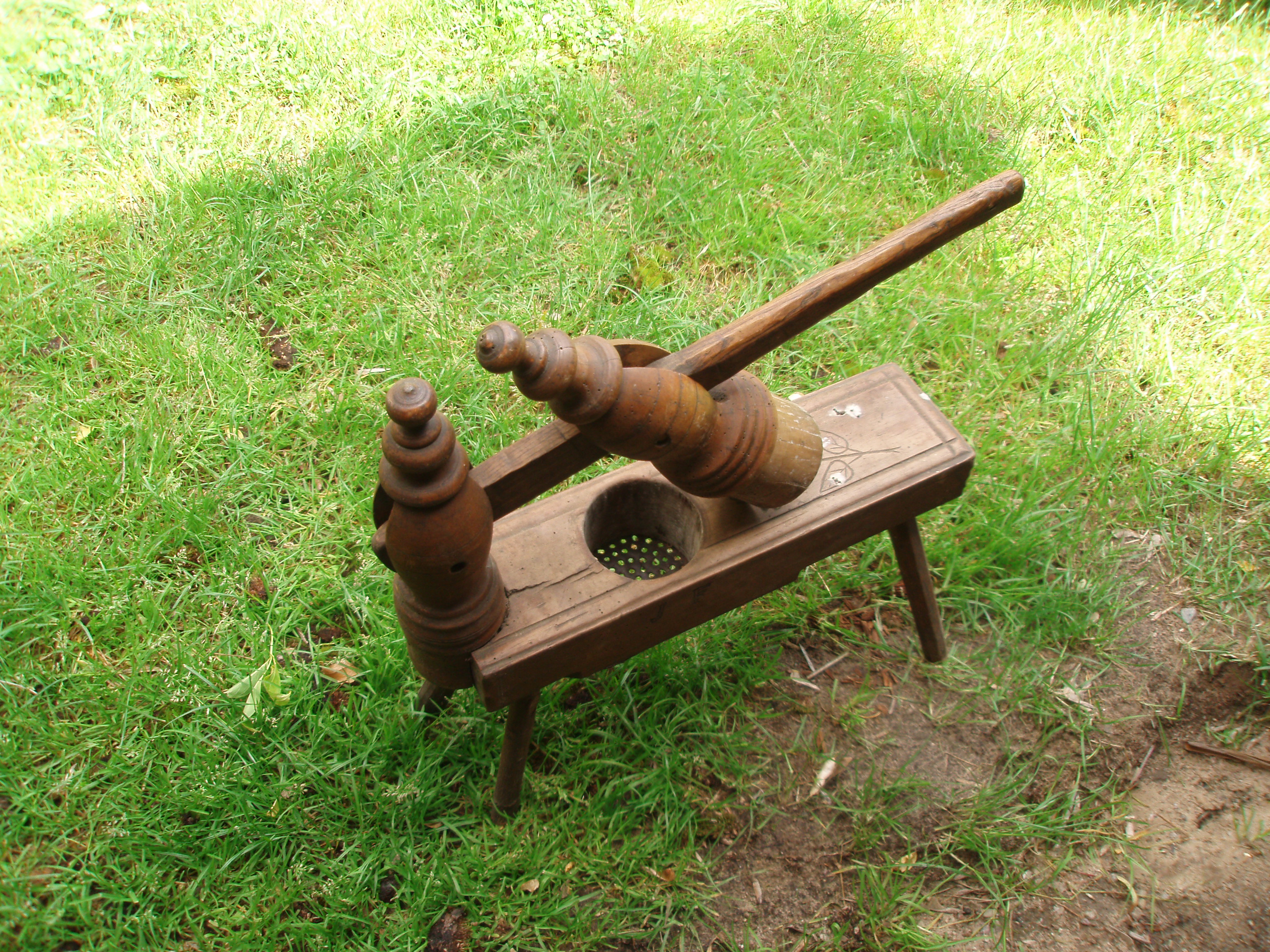Prasa do tłuczenia ziemniaków z 1933 roku. Utłuczone ziemniaki służyły do przyrządzania pyr duszonych. Regionalnym przysmakiem są pyry z gzikiem.