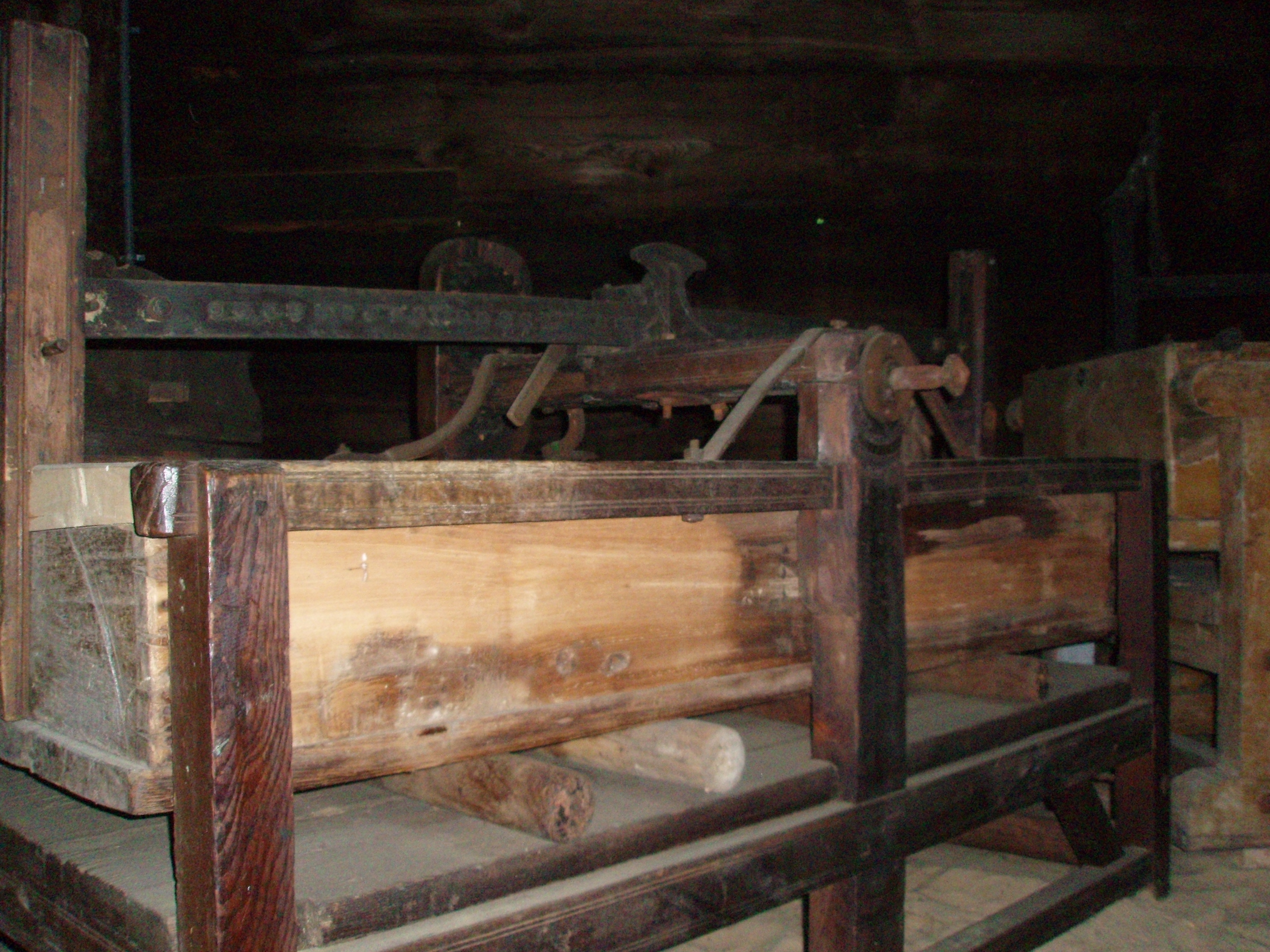 Magiel z pałacu w Chorzelinie. Wannę obciążano kamieniami, na wałki nakładano materiał i w ten sposób prasowano nałożony materiał.