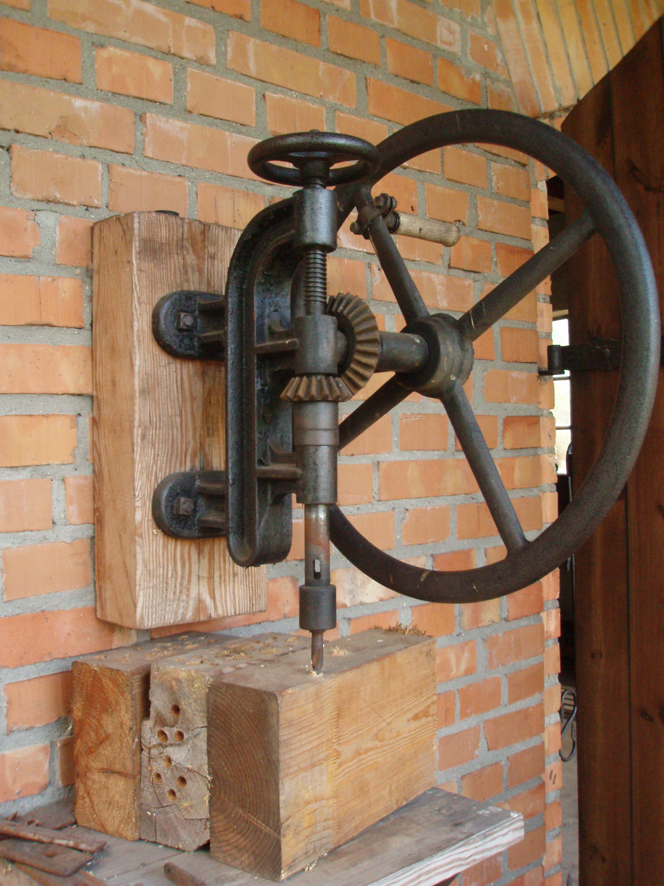 W kuźni oraz przed kuźnią obejrzeć można kilka wiertarek ręcznych służą do wiercenia nie tylko w drewnie, ale również w metalu.