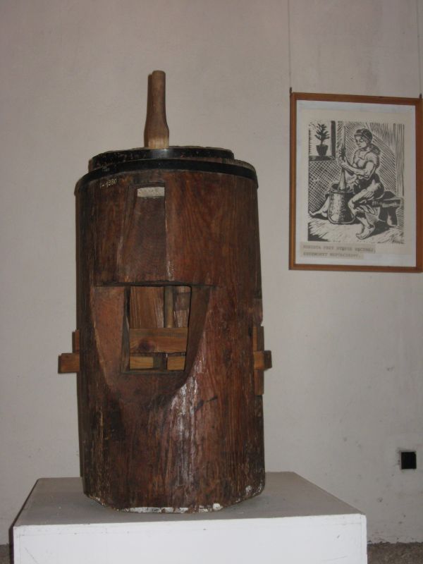 Żarna rotacyjne w obudowie ulowatej z miejscowości Liszna. Obudowa żaren z wydrążonego pnia.