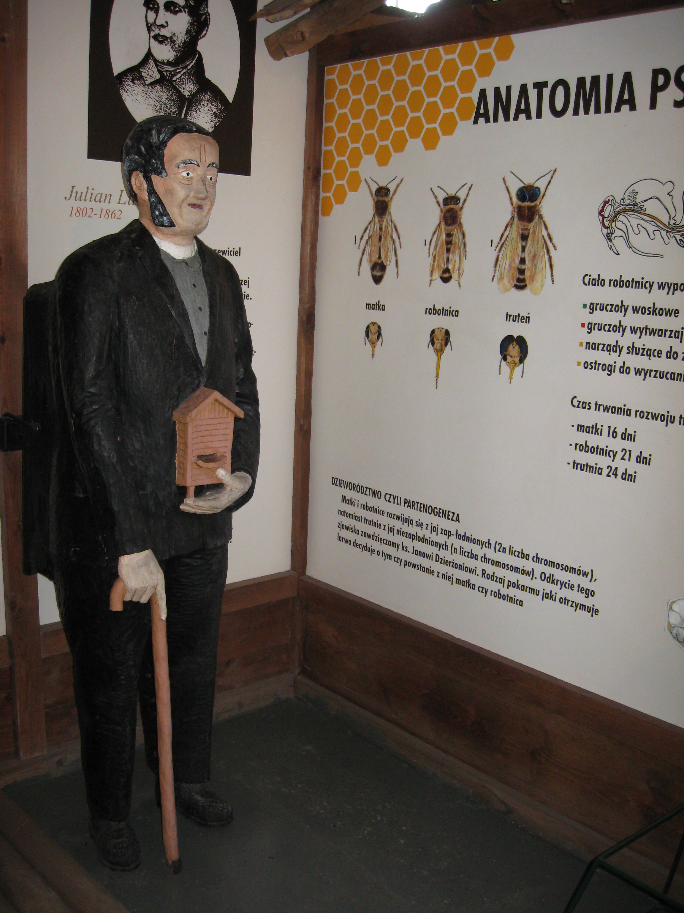 Ul figuralny przedstawiający Juliana Lubienieckiego w Skansenie i Muzeum Pszczelarstwa w Swarzędzu. Ul polichromowany z jednego kawałka drewna.