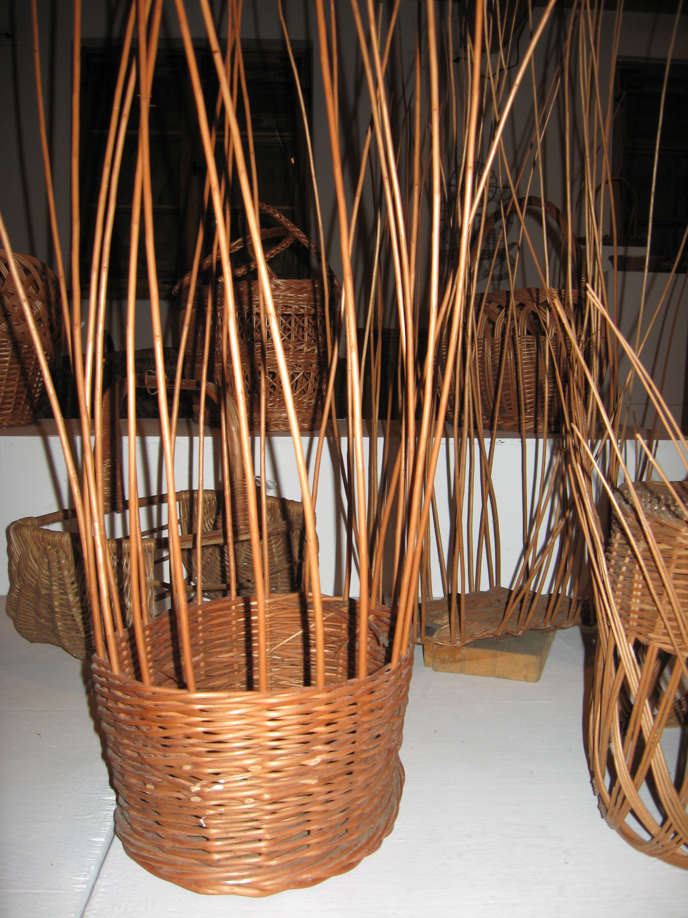 Fragment ekspozycji ukazujący proces plecenia koszyka.