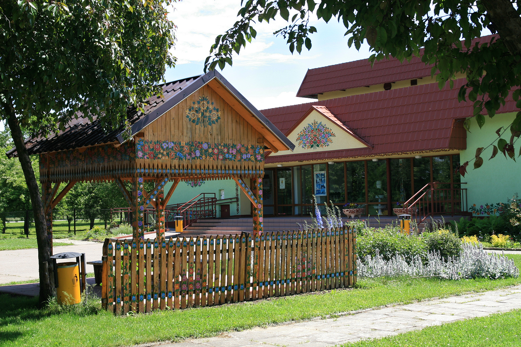 Dom Malerek im.Felicji Curyłowej – ośrodek pracy twórczej okolicznych artystów. Drewniana altana i portal nad wejściem do ośrodka bogato malowane zalipiańskimi wzorami kwiatowymi.