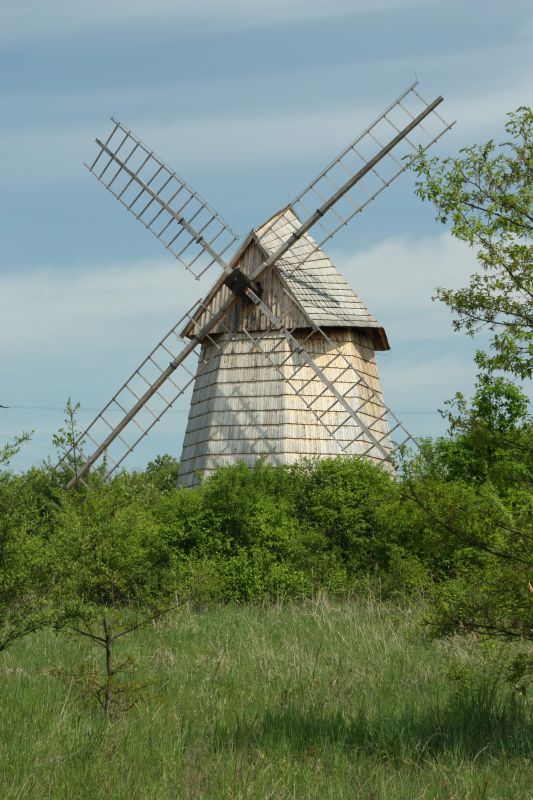Wiatrak holenderski ze wsi Pacanów z lat 1917-1919. Wiatrak dwukondygnacyjny na planie ośmioboku. Budynek o konstrukcji szkieletowo-ryglowej oszalowanej deskami i pokrytej gontem. Dach namiotowy o konstrukcji krokwiowej, kryty gontem. Czapę wraz ze skrzydłami obracano w stronę wiatru za pomocą dyszla. |
