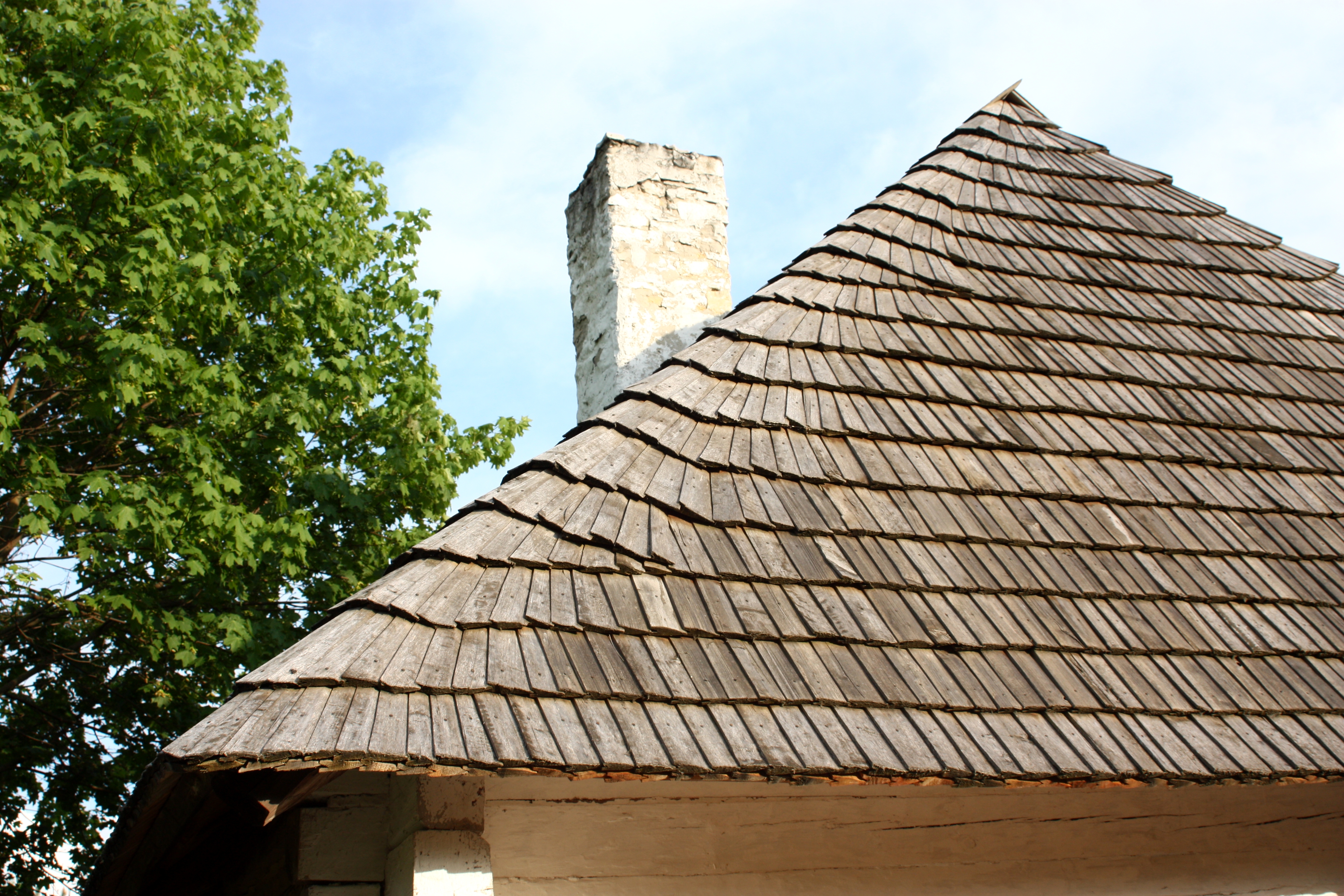 Cechą charaktersytyczną dla budownictwa Kielecczyzny były dachy kryte gontem. Na zdjęciu widzimy przykład takiego dachu pokrywającego chałupę ze wsi Bieliny z 1789 roku.
