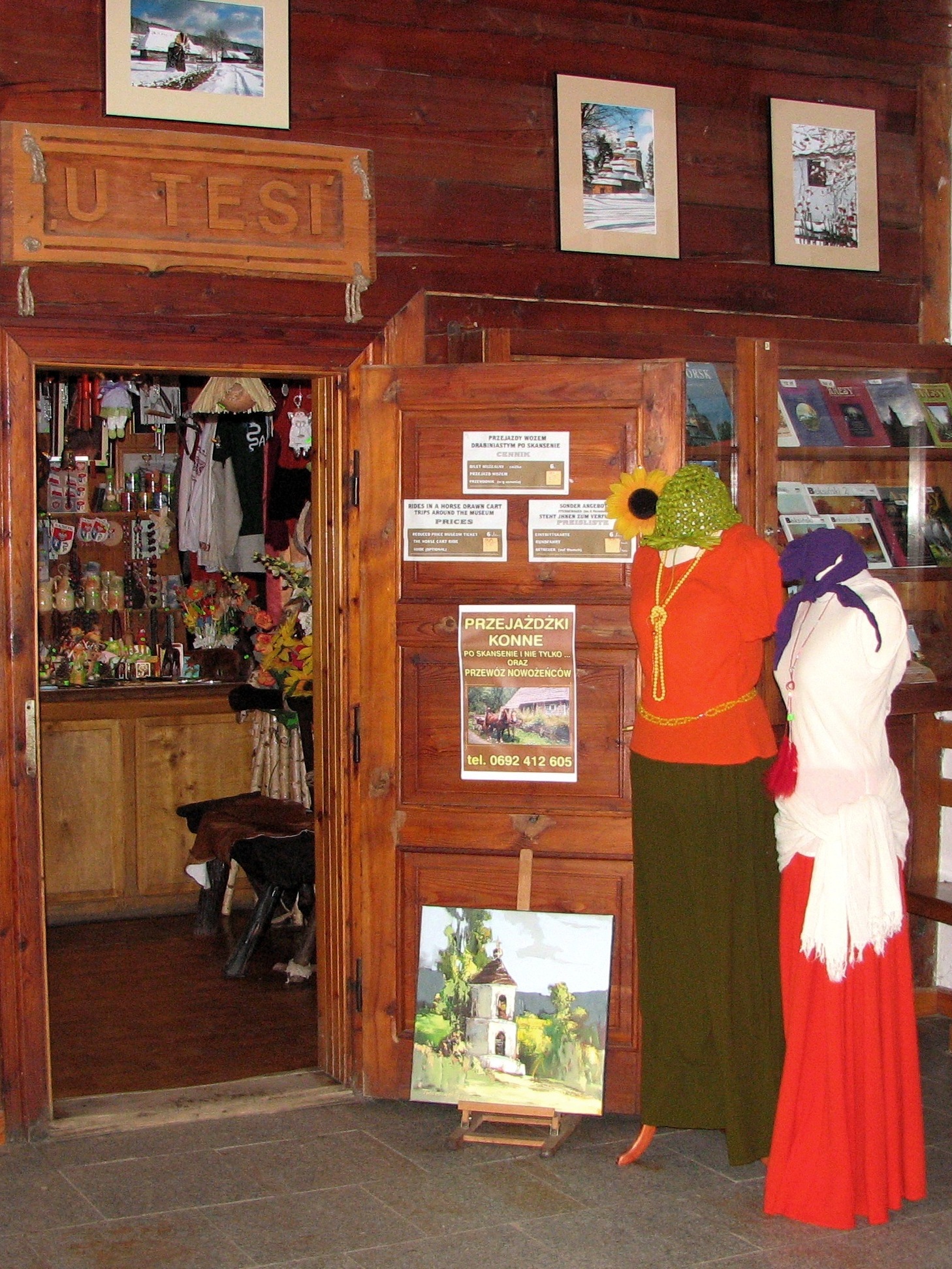 Wejście do galerii_sklepu z pamiątkami „U Tesi” we wnętrzu dworku podmiejskiego Słupnickich z Sanoka z połowy XIX wieku.