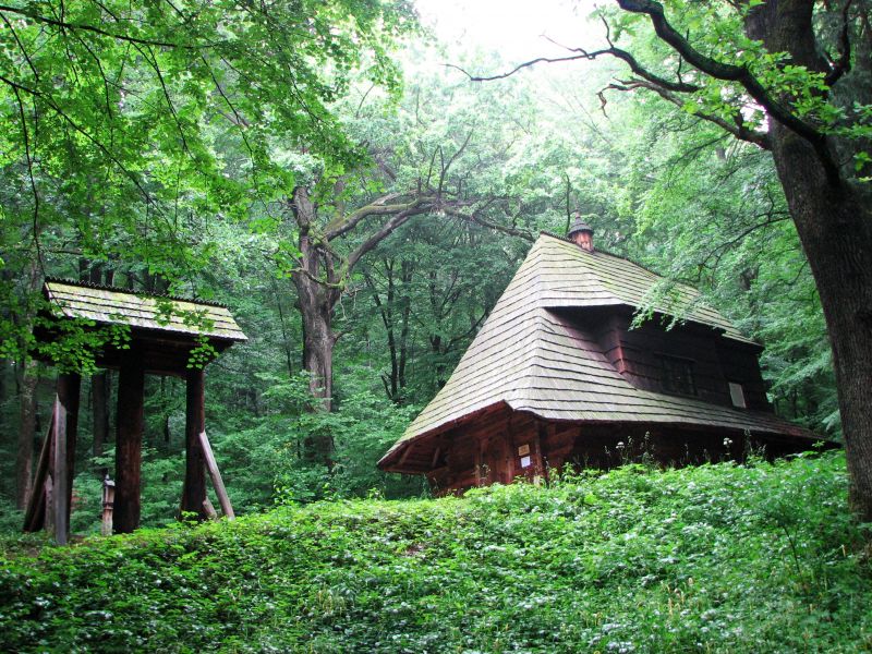 Greckokatolicka cerkiew św. Onufrego Pustelnika ze wsi Rosolin z 1750 roku. Budynek o konstrukcji zrębowej, na kamiennej podmurówce. Dach kryty gontem. Po lewej dzwonnica z 1751 roku, zbudowana z trzech słupów nakrytych dwuspadowym gontowym dachem.