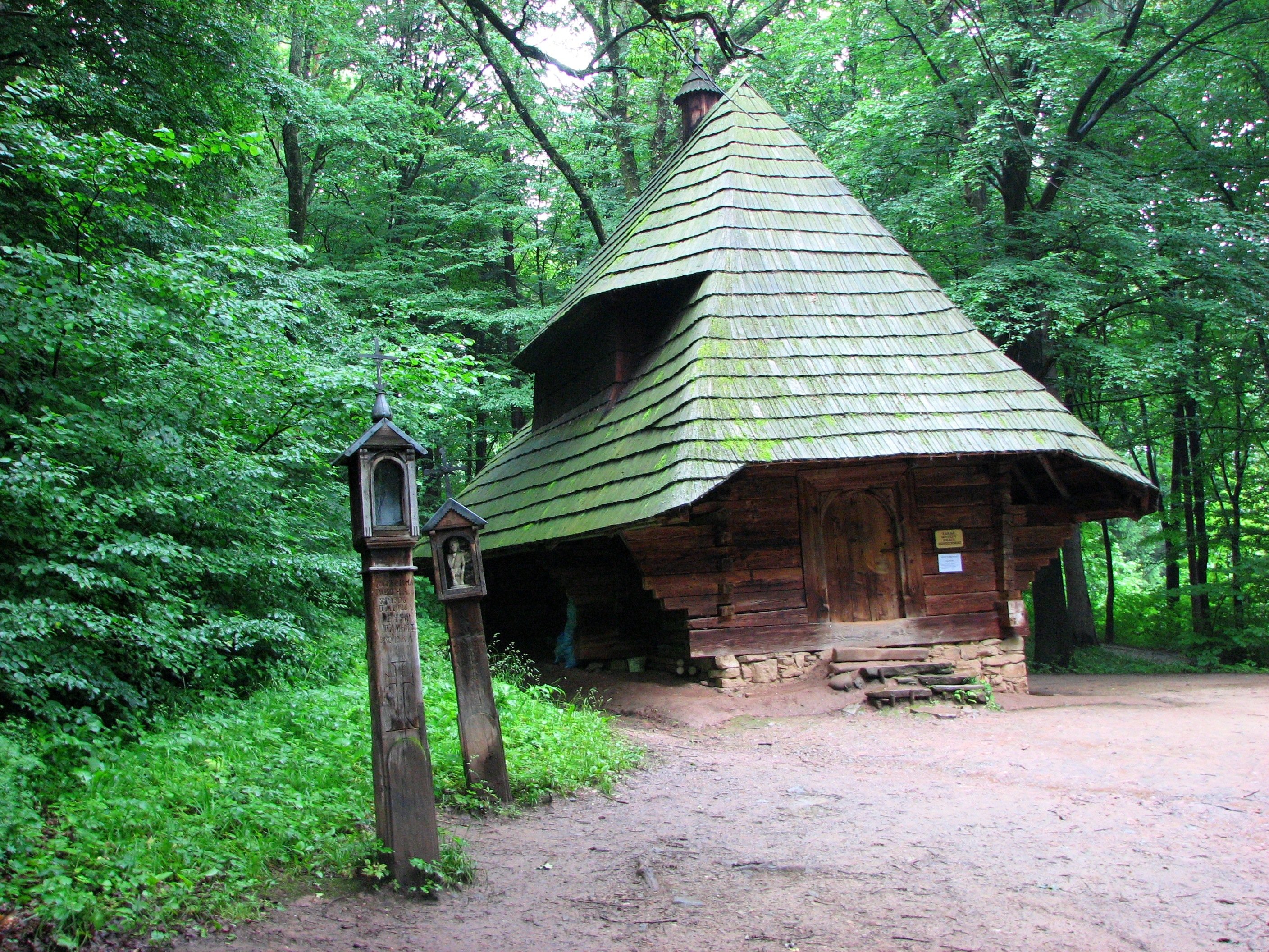 Greckokatolicka cerkiew św. Onufrego Pustelnika ze wsi Rosolin z 1750 roku. Budynek o konstrukcji zrębowej z mocno wysuniętymi ostatkami (rysie) na których opiera się dach, na kamiennej podmurówce. Dach kryty gontem. Po lewej dwie drewniane kapliczki słupowe ze wsi Wolica z lat 1924_1925.