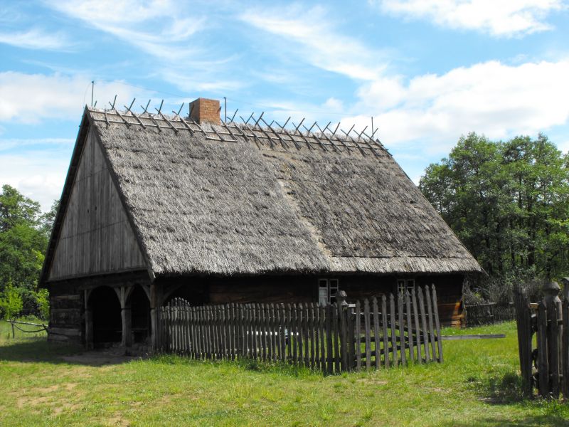 Chałupa dobrzyńska z ok. 1760 roku ze wsi Kamienny Smug - najstarsza chałupa w skansenie. Budowla o konstrukcji zrębowej z szerokich bali łączonych na węgłach na „rybi ogon”. Dach dwuspadowy z kozłami, kryty słomą. Od strony szczytowej, podcień narożny, wsparty na trzech słupach.