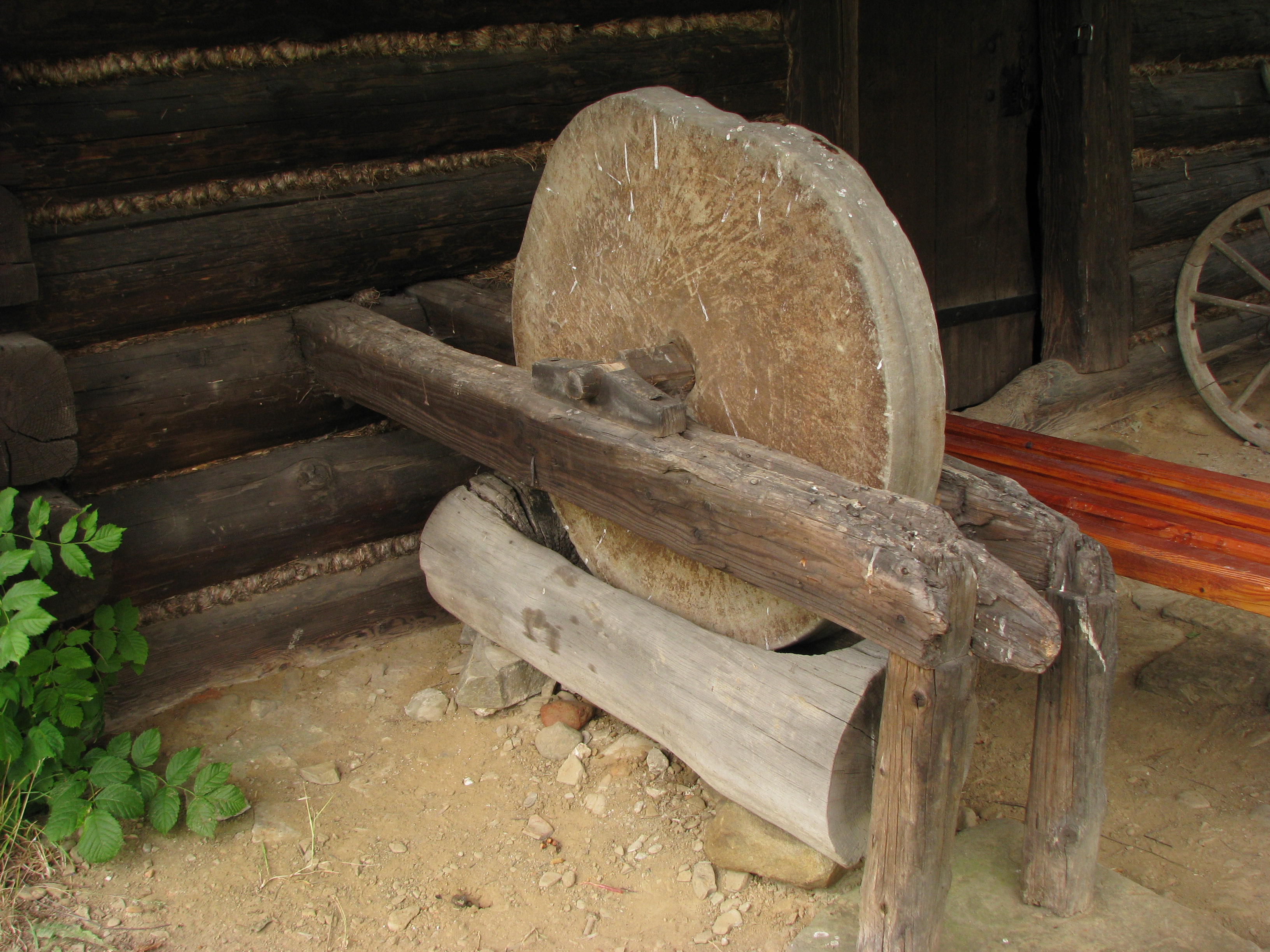 Jeden z elementów wyposażenia kuźni ze wsi Turze. Kamienne koło do ostrzenia narzędzi.