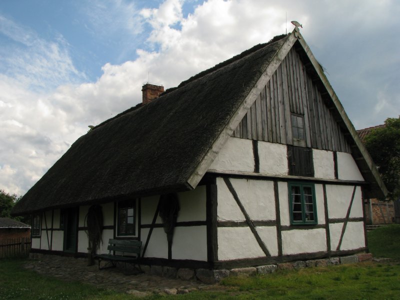 Dom nadolskiej rodziny rybackiej Kuhrów. Chałupa o konstrukcji szkieletowej ze skośnymi drewnianymi belkami (ryglami) wzmacniającymi naroża. Dach dwuspadowy kryty trzciną ze szczytami z obu stron zwieńczonymi pazdurami w kształcie ryb. Budynek postawiony na podmurówce z kamienia polnego.