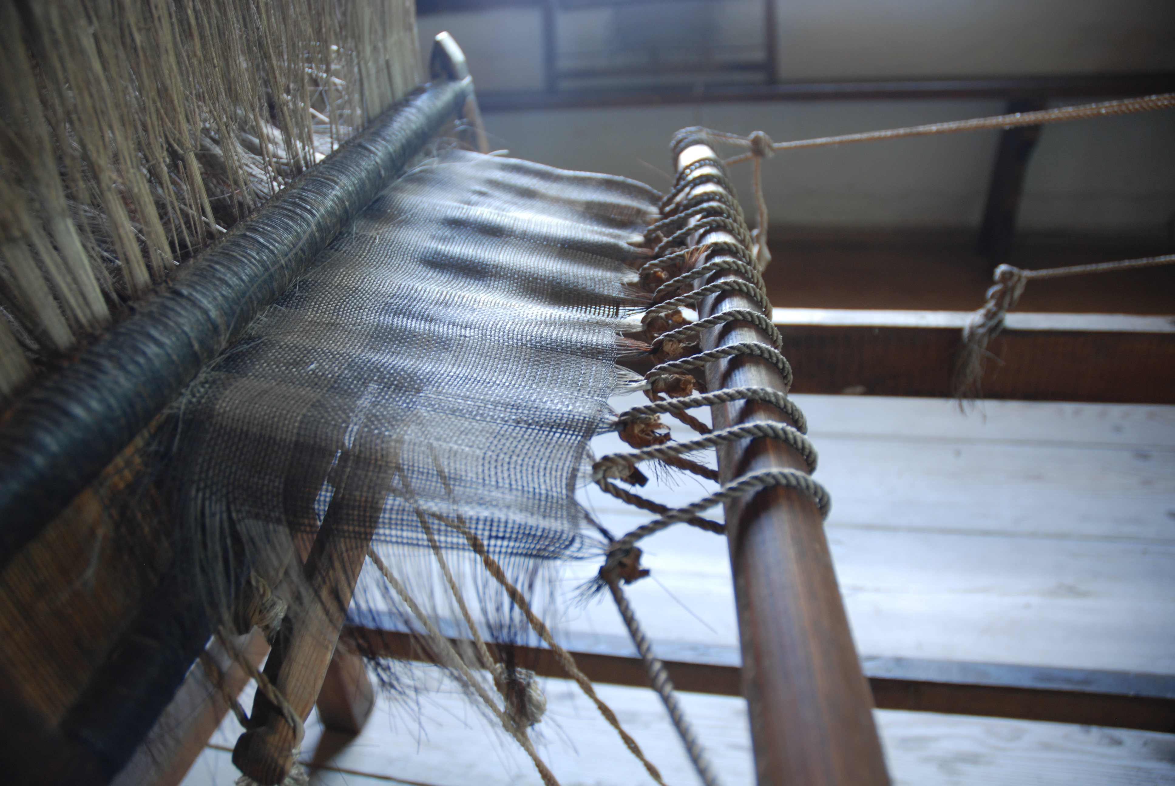 Krosna nożne we wnętrzu warsztatu - element ekspozycji. „Płócienka” do sit kobiety wyplatały z włosia końskiego na krosnach