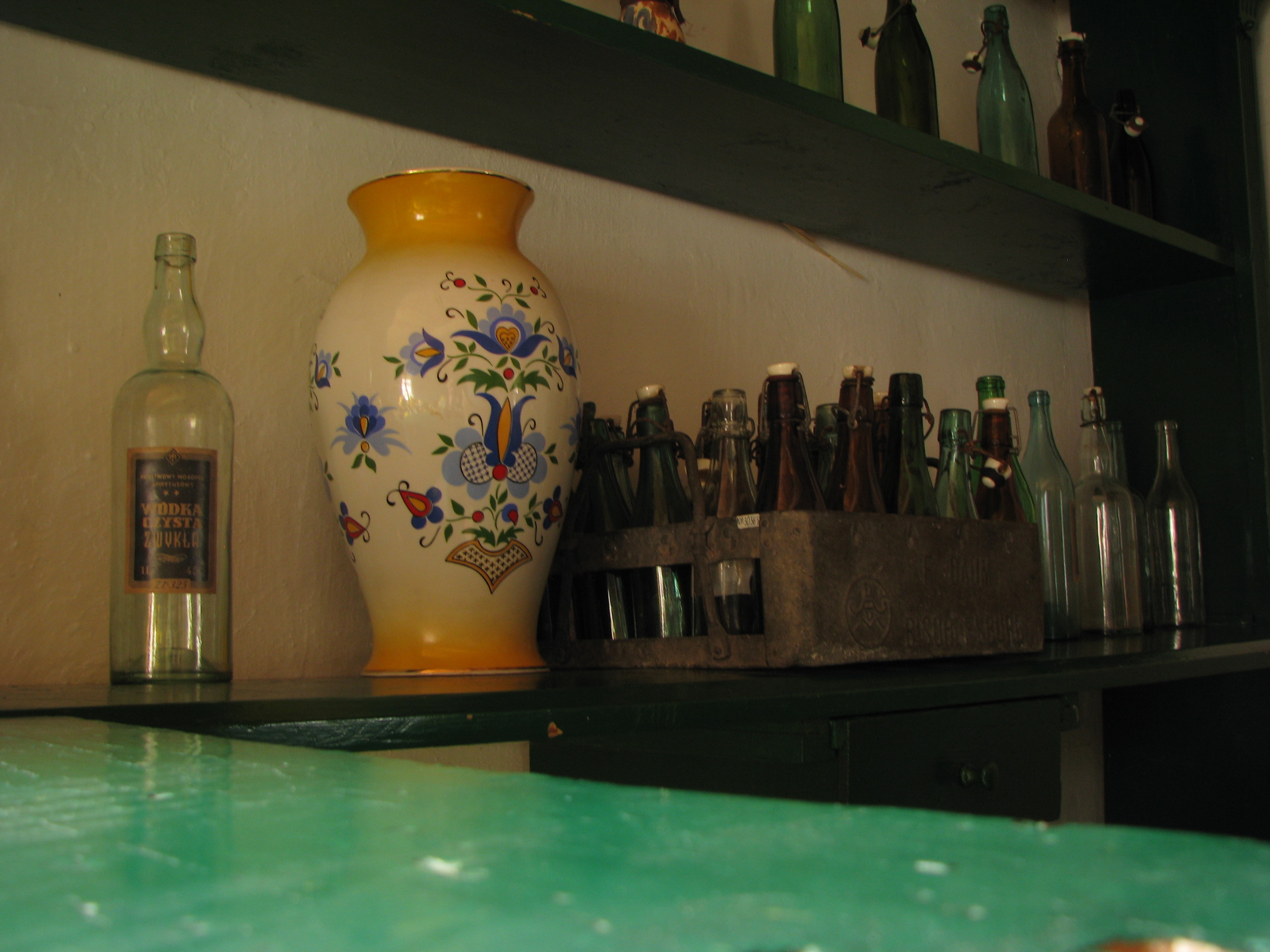 Oryginalny bufet pochodzący z początku XX wieku ze wsi Leśniewo. Na pierwszym planie wazon pomalowany w tradycyjny kaszubski wzór.