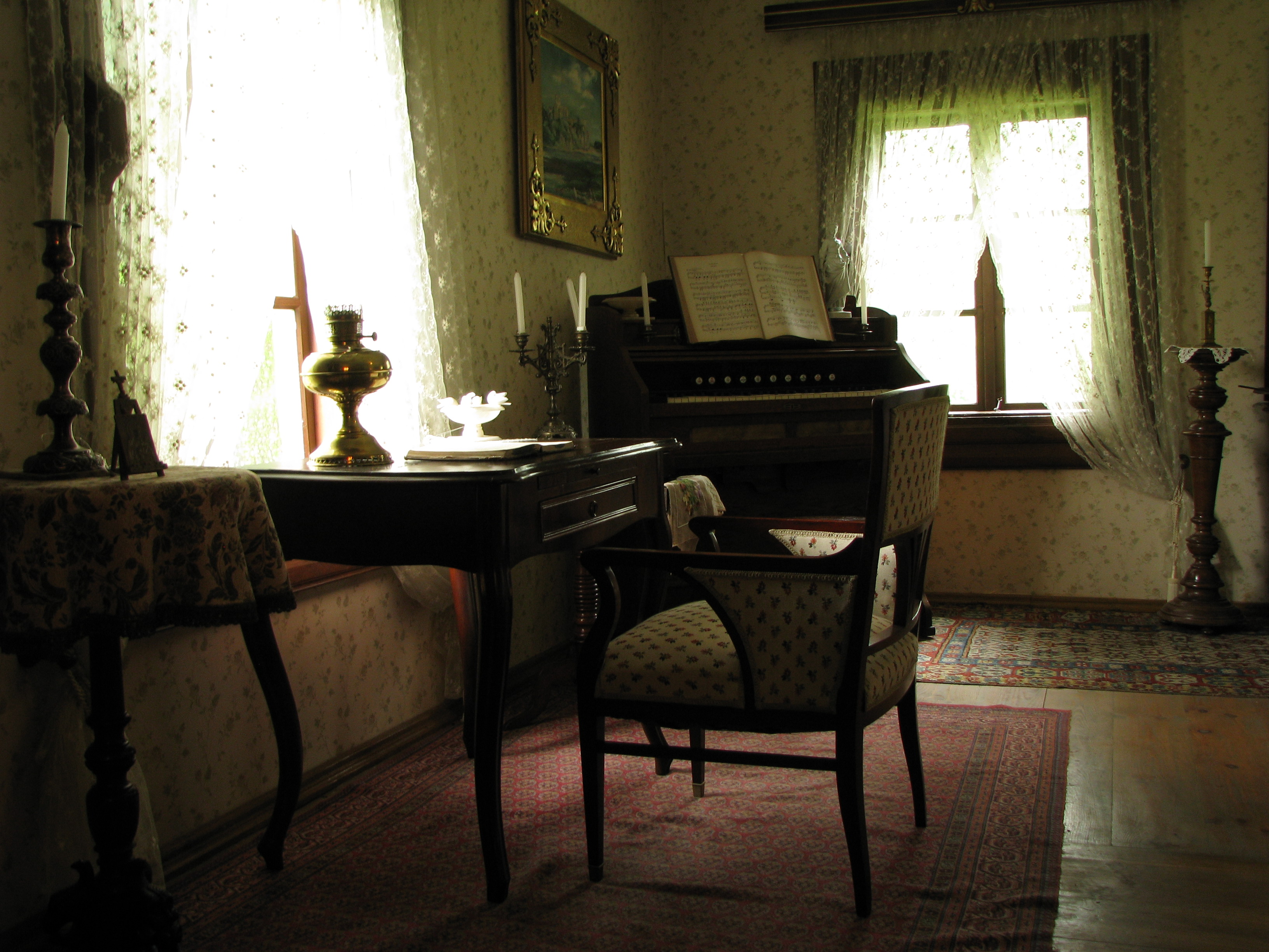 Salon wewnątrz dworu ze wsi Rdzawa z XIX-wiecznym umeblowaniem.