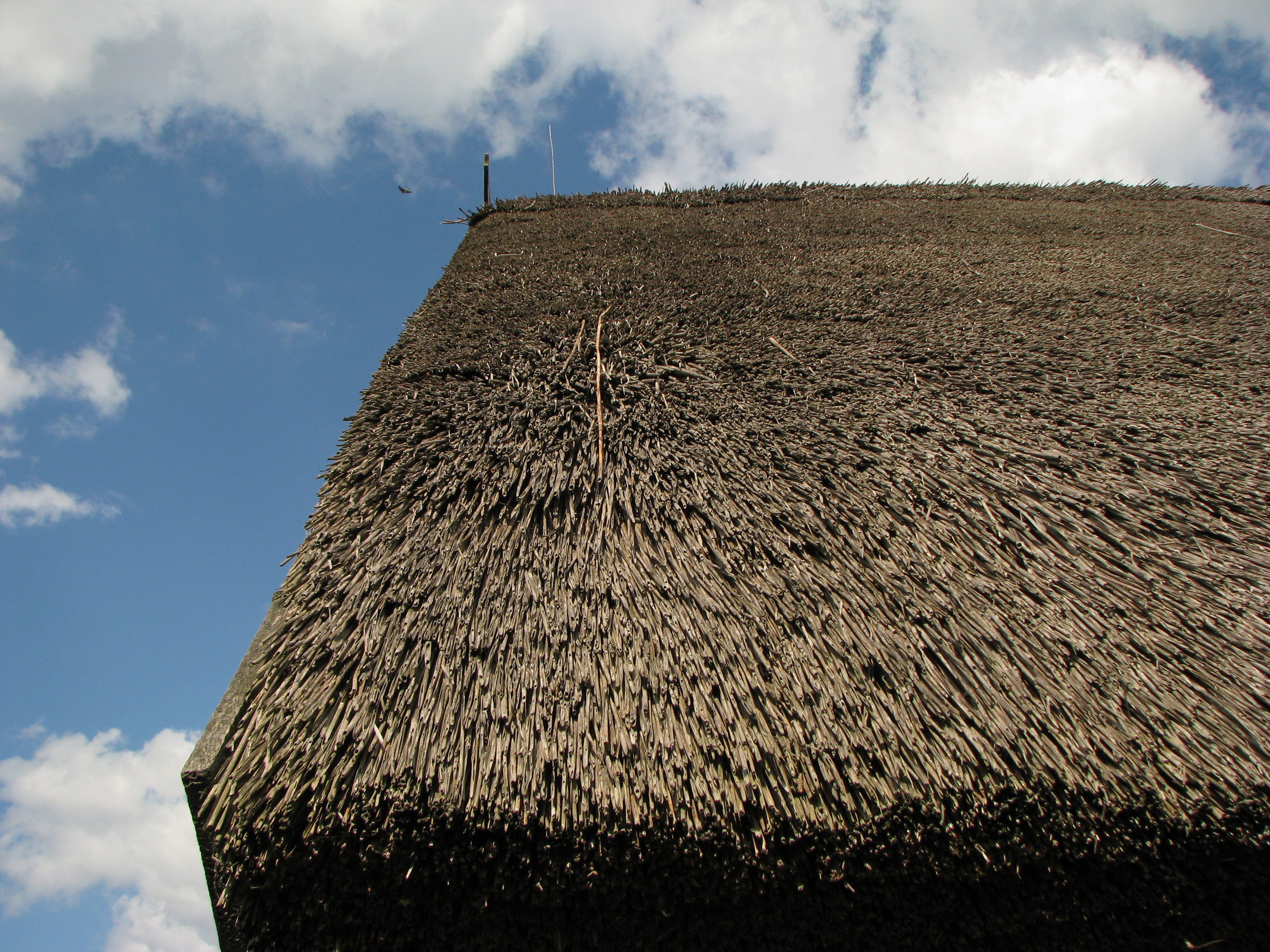 Fragment dachu krytego trzciną.