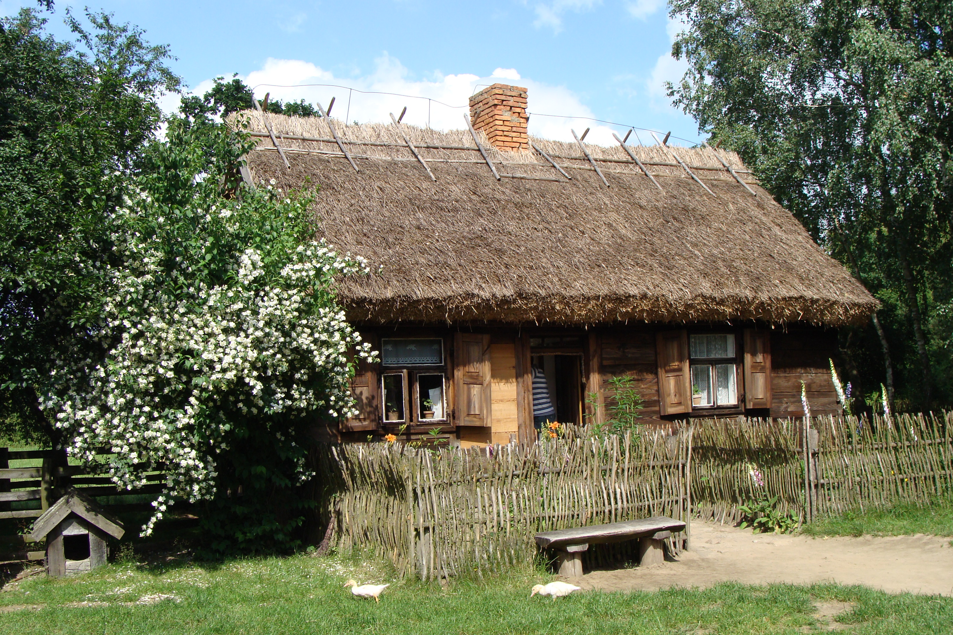 Chałupa szerokofrontowa ze wsi Rzeszotary Chwały z 1910 roku. Budynek o konstrukcji sumikowo-łątkowej łączonej ze zrębową z węgłami łączonymi na rybi ogon. Belki łątek z drzewa dębowego a sumiki z sosnowego. Dach dwuspadowy krokwiowo-jętkowy, pokryty słomą, wzmocniony kozłami.