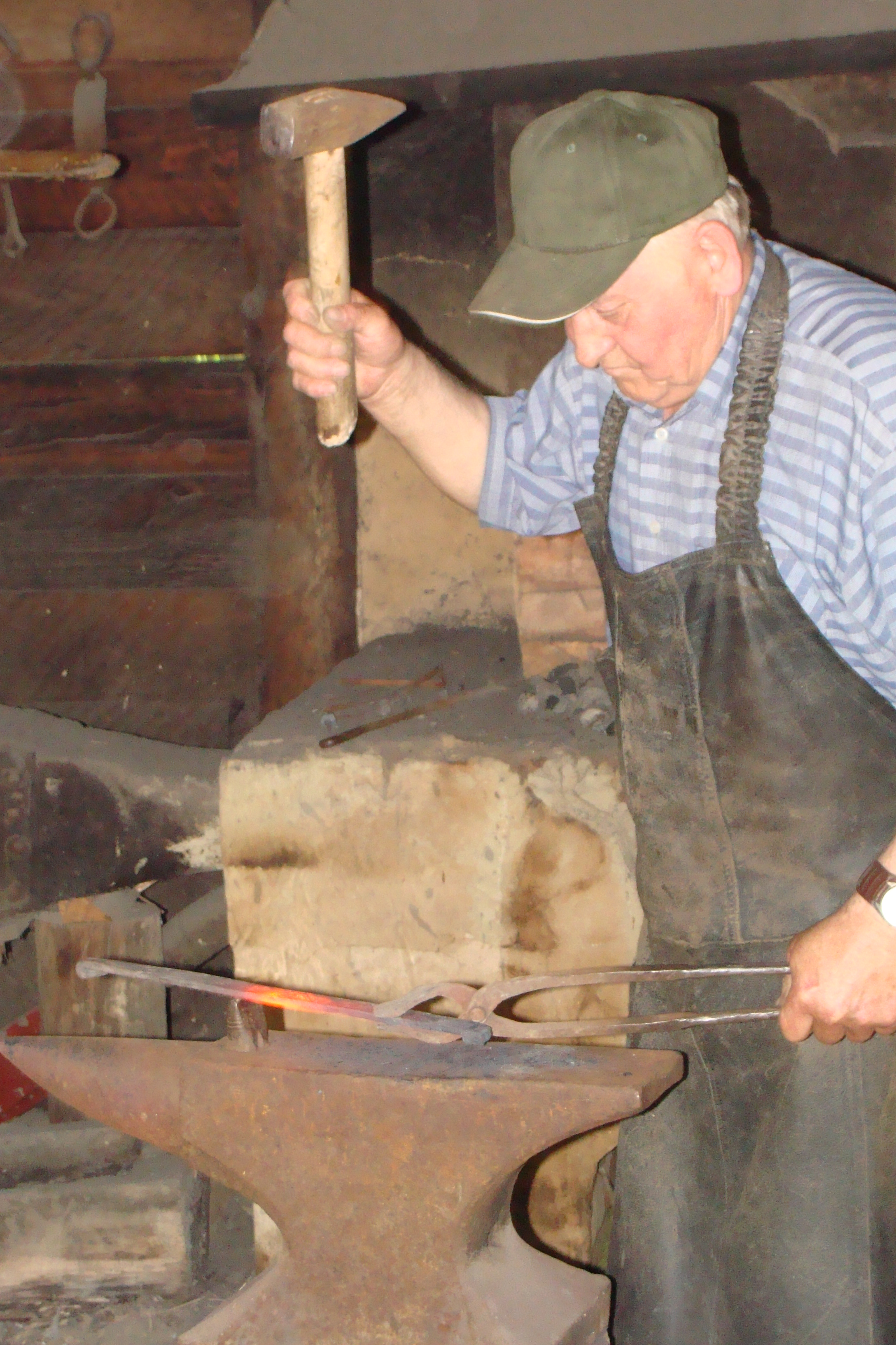 Podczas „Niedzieli w skansenie” można przyjrzeć się pracy kowal z kuźni. Na zdjęciu widoczne kowadło typu angielskiego (jednorożne), młot kowalski i kleszcze.