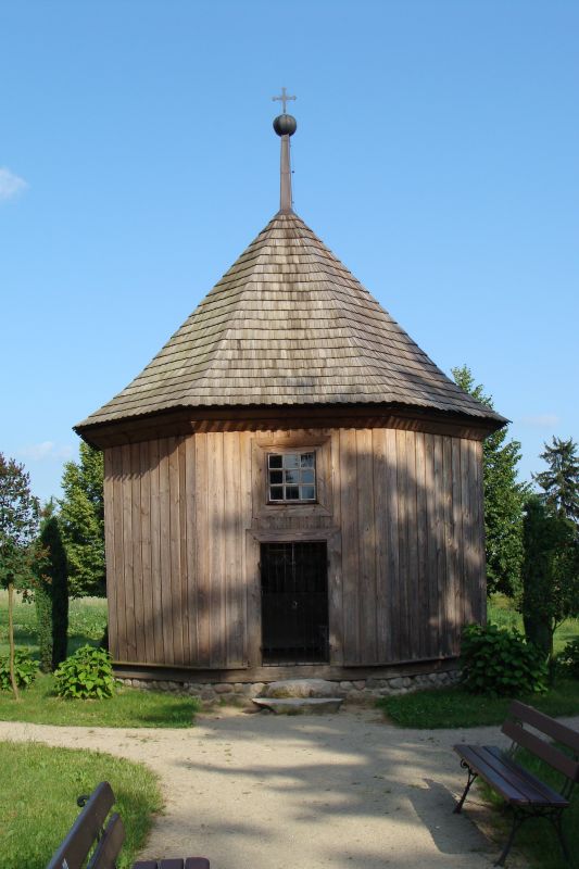 Drewniana kaplica ze wsi Dębsk. Budynek na planie ośmiokąta na fundamencie z kamienia. Kaplica z drewna sosnowego o konstrukcji zrębowej pokrytej szalunkiem. Dach krokwiowo-namiotowy kryty gontem.
