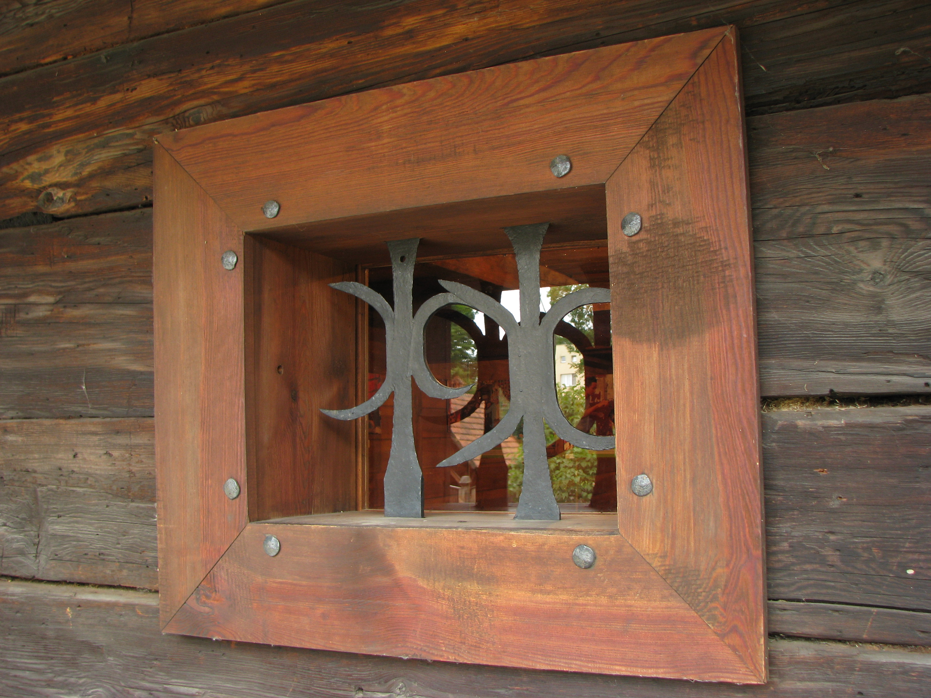 Okno z okuciami ochronnymi w osiemnastowiecznym spichlerzu kujawskim.