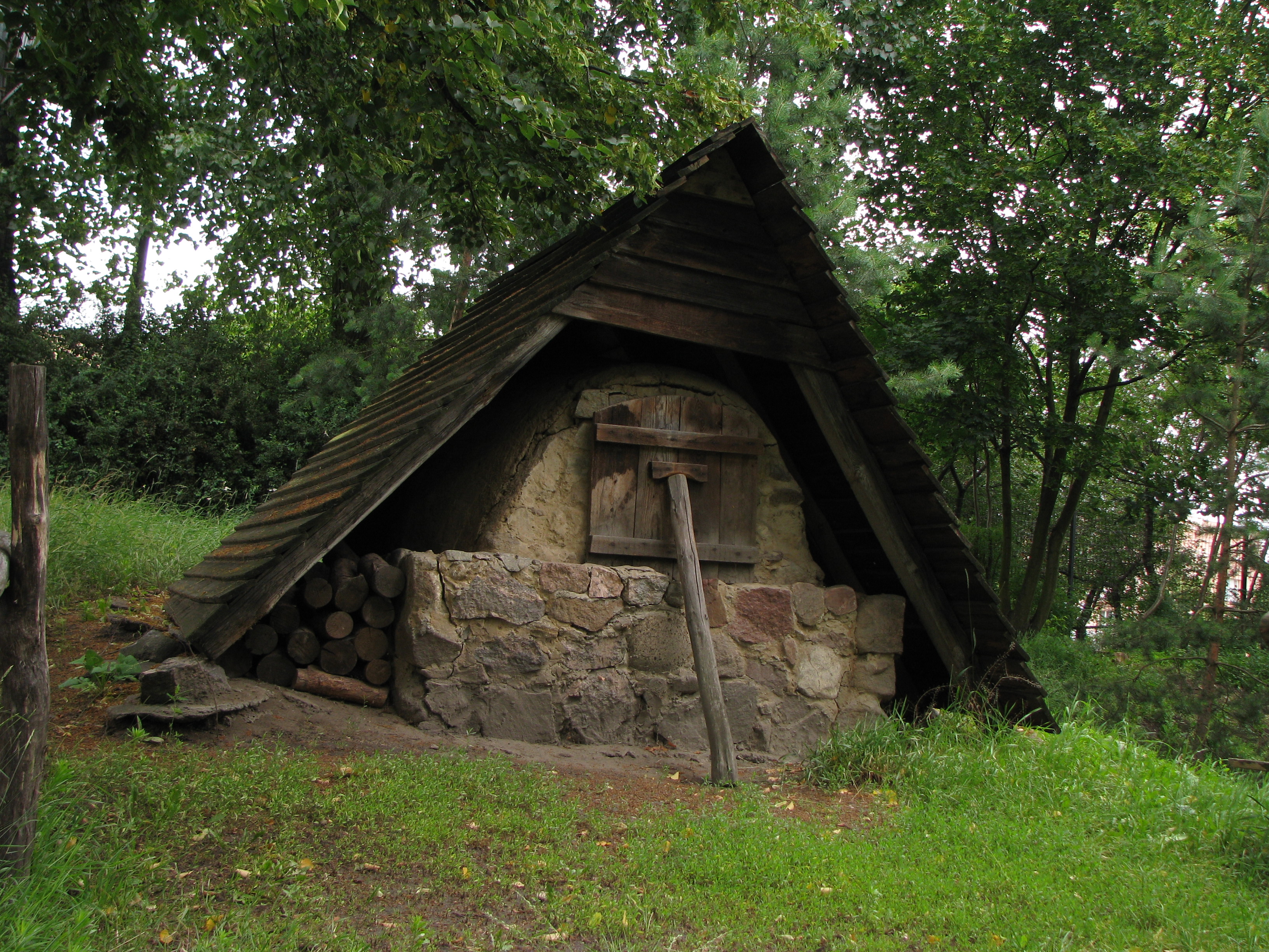 Kaszubski piec chlebowy wolnostojący z końca XIX w. Piec murowany z kamienia uzupełnianego zaprawą. Dach dwuspadowy kryty gontem.