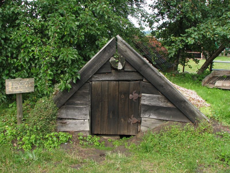 Piwnica, tzw. kula. Ziemianka służąca do przechowywania płodów rolnych. Dach ślemieniowy, kryty darnią.