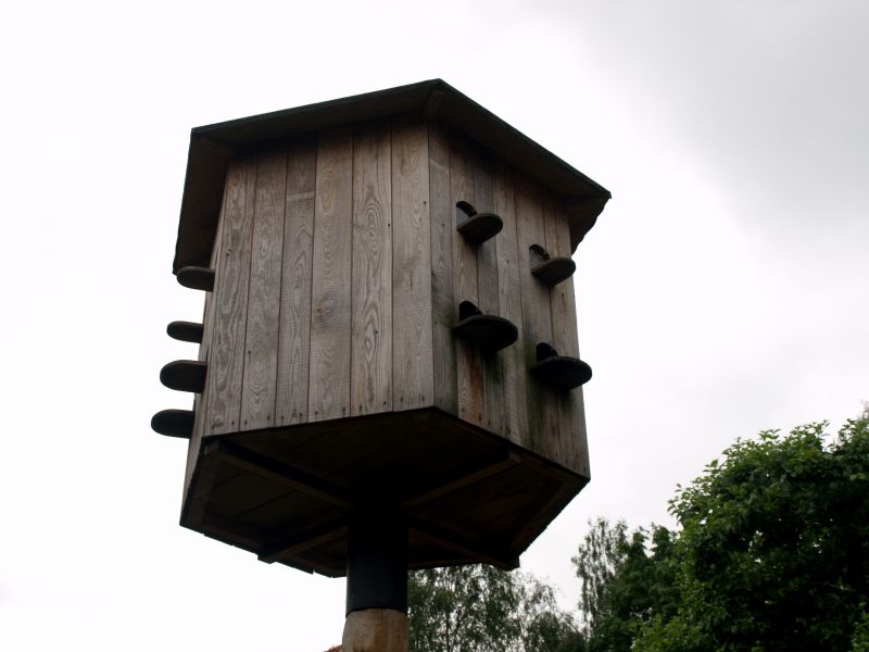 Gołębnik ze wsi Jerutki z drugiej połowy XIX wieku. Gółębnik drewniany, sześcioboczny, zamieszczony na wysokim słupie.