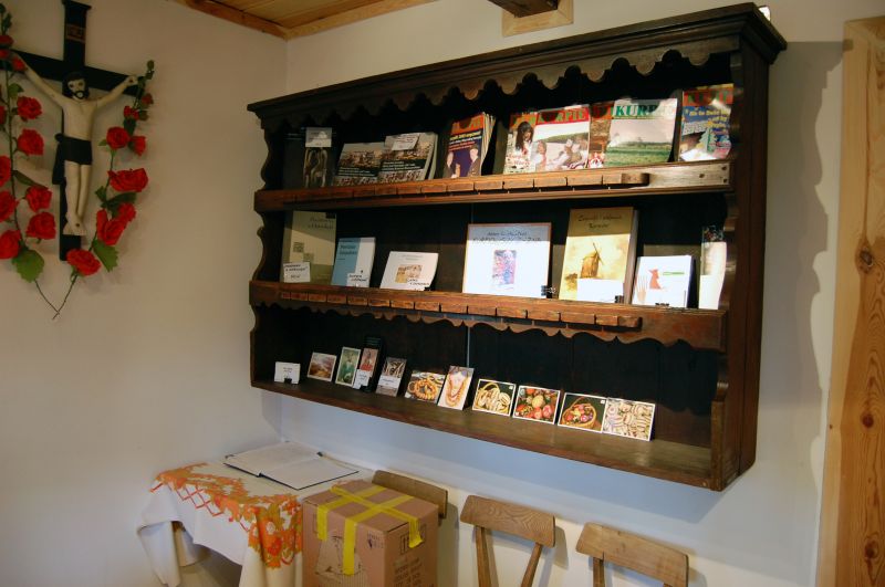Duża izba w chałupie kurpiowskiej przeniesiona z Tatar, zbudowana w 1948r. konstrukcja zrębowa, typ asymetryczno-dośrodkowy; system ogniowy tworzy kuchnia i piec z kafli. Kasa biletowa i sklep z pamiątkami.