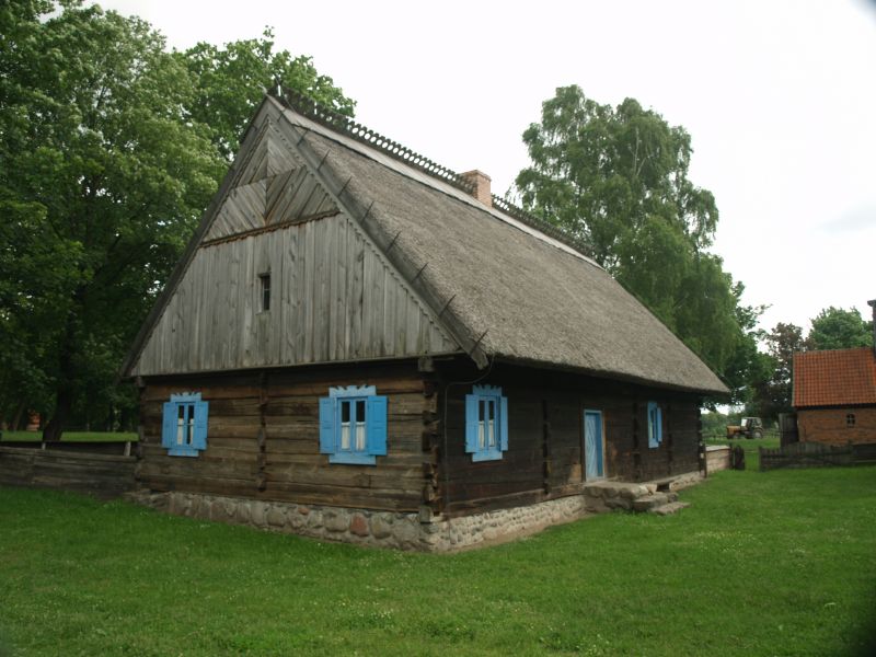 Chałupa ze wsi Kaborno z przełomu XVIII i XIX wieku. Chałupa szerokofrontowa na kamiennej podmurówce. Budynek o konstrukcji zrębowej z łączeniami naroży na „rybi ogon”. Ściany szczytowe oszalowane deskami pionowo, a w górnej części szczytu w romby. Dach dwuspadowy kryty trzciną.
