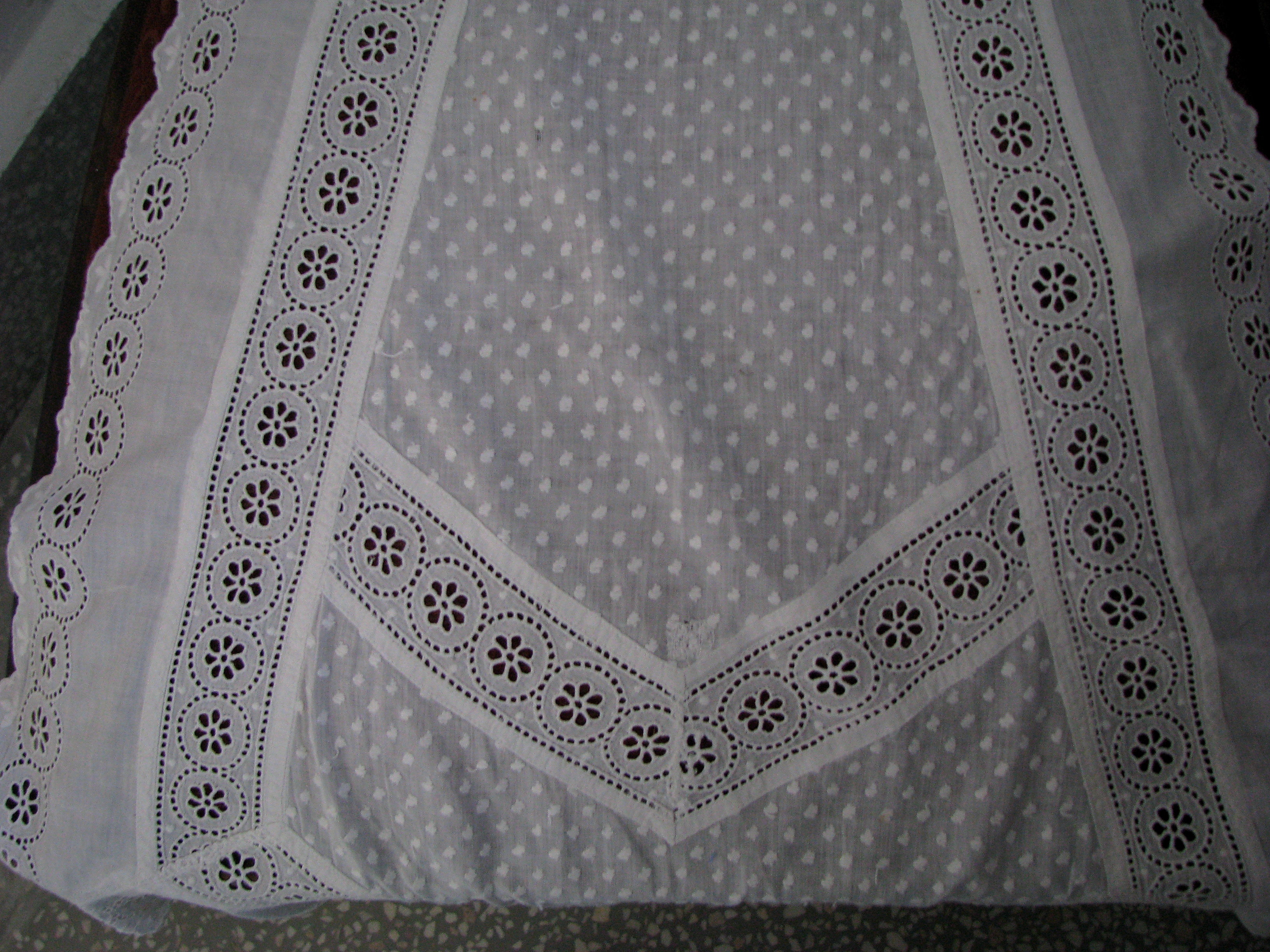 Zagroda Albrechta w Swołowie - wnętrze domu. Na zdjęciu fragment fartucha haftowanego.