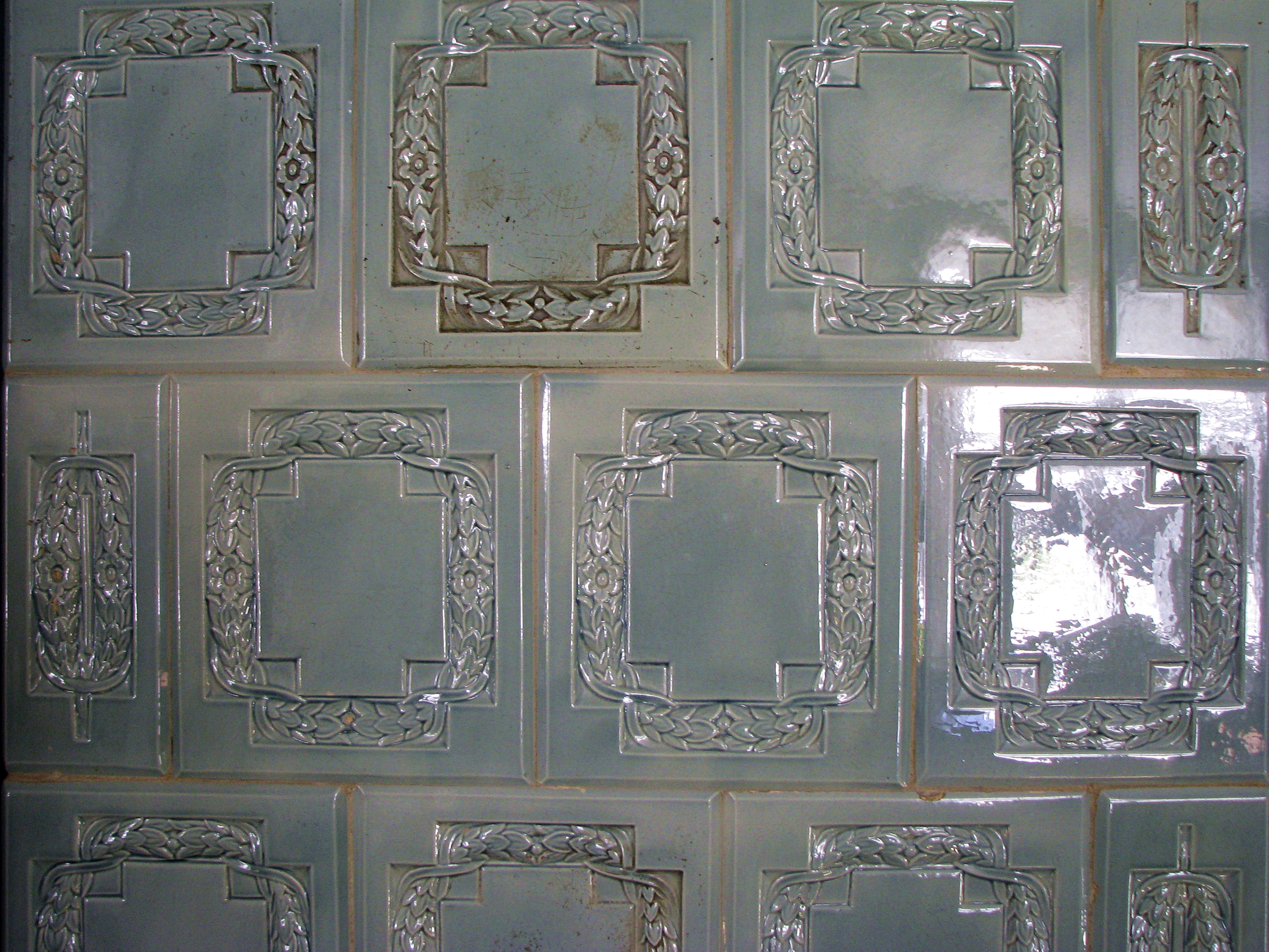 Zagroda Albrechta w Swołowie - wnętrze domu. Na zdjęciu fragment pieca kaflowego z widocznymi zdobieniami.