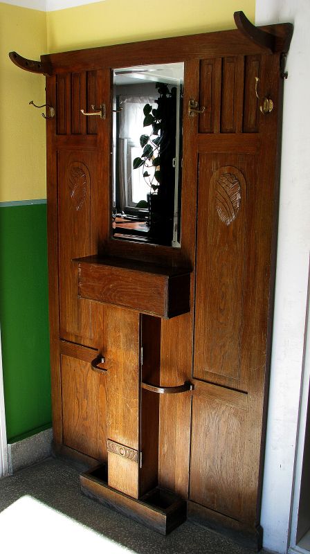 Zagroda Albrechta w Swołowie - wnętrze domu. Na zdjęciu wieszak na ubrania stojący w sieni.