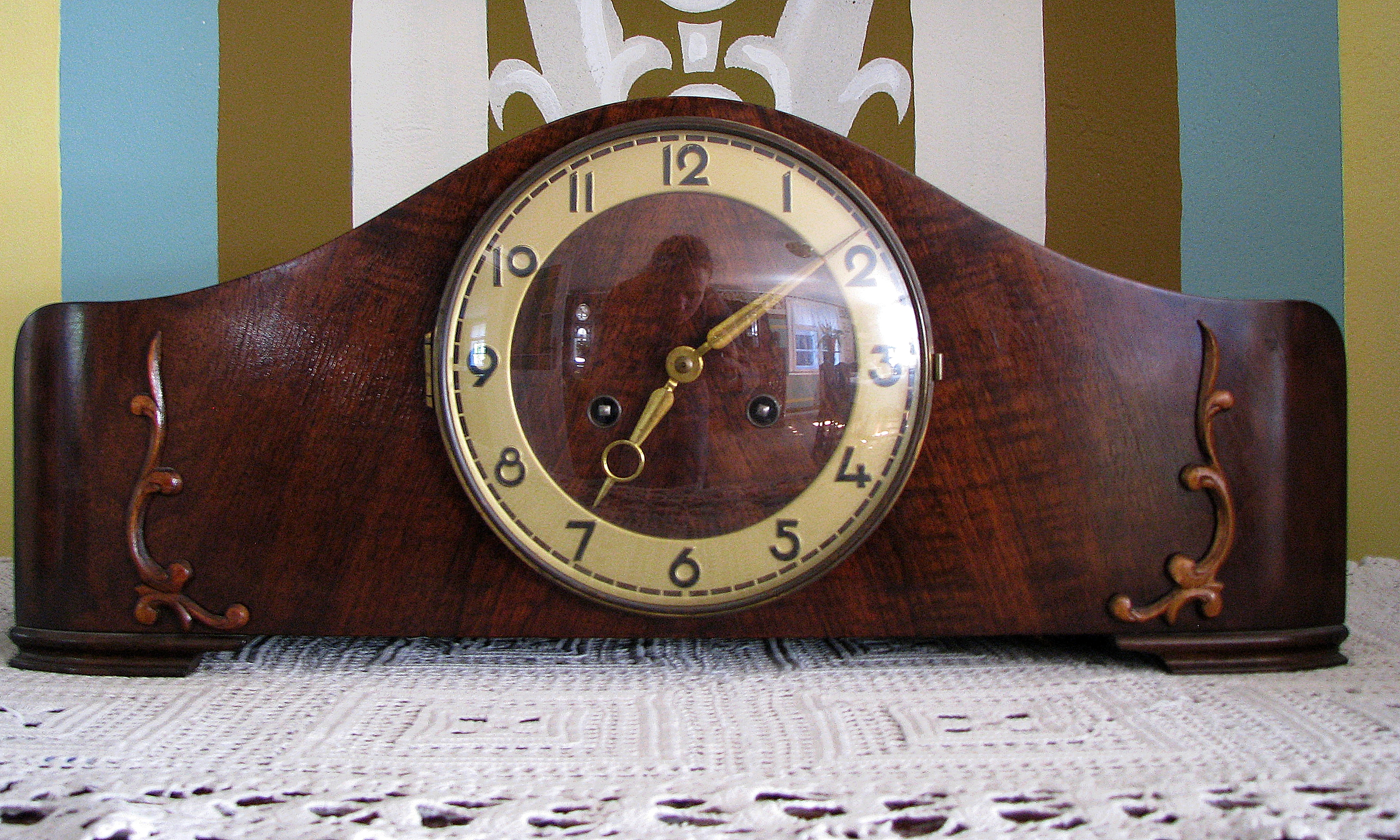 Zagroda Albrechta w Swołowie - wnętrze domu. Na zdjęciu zegar stojący.